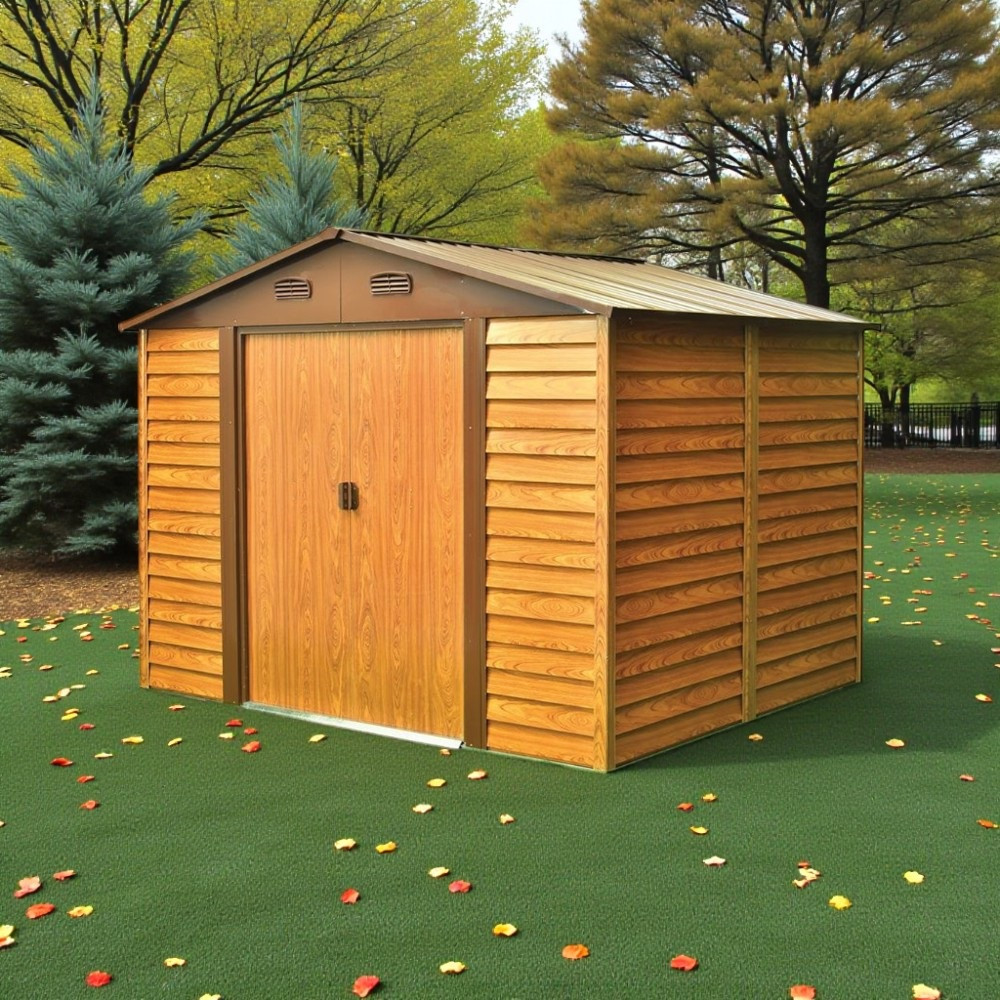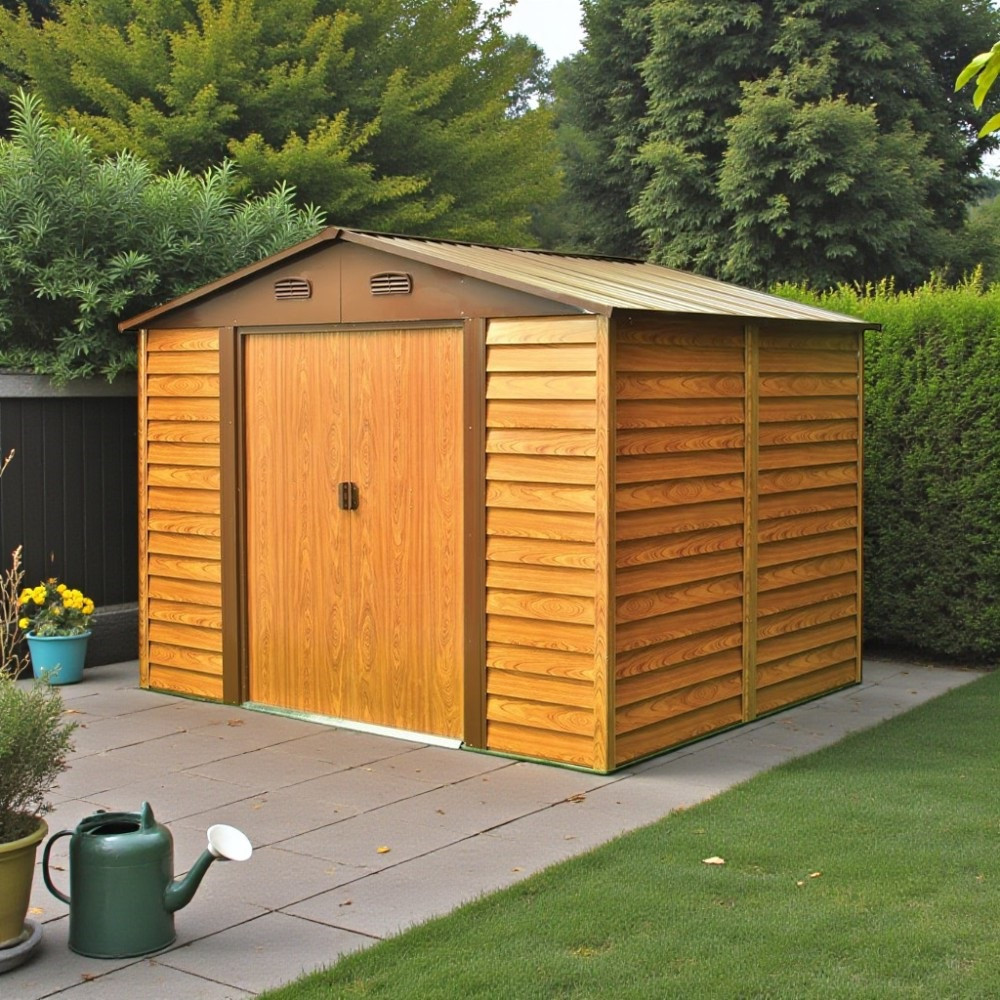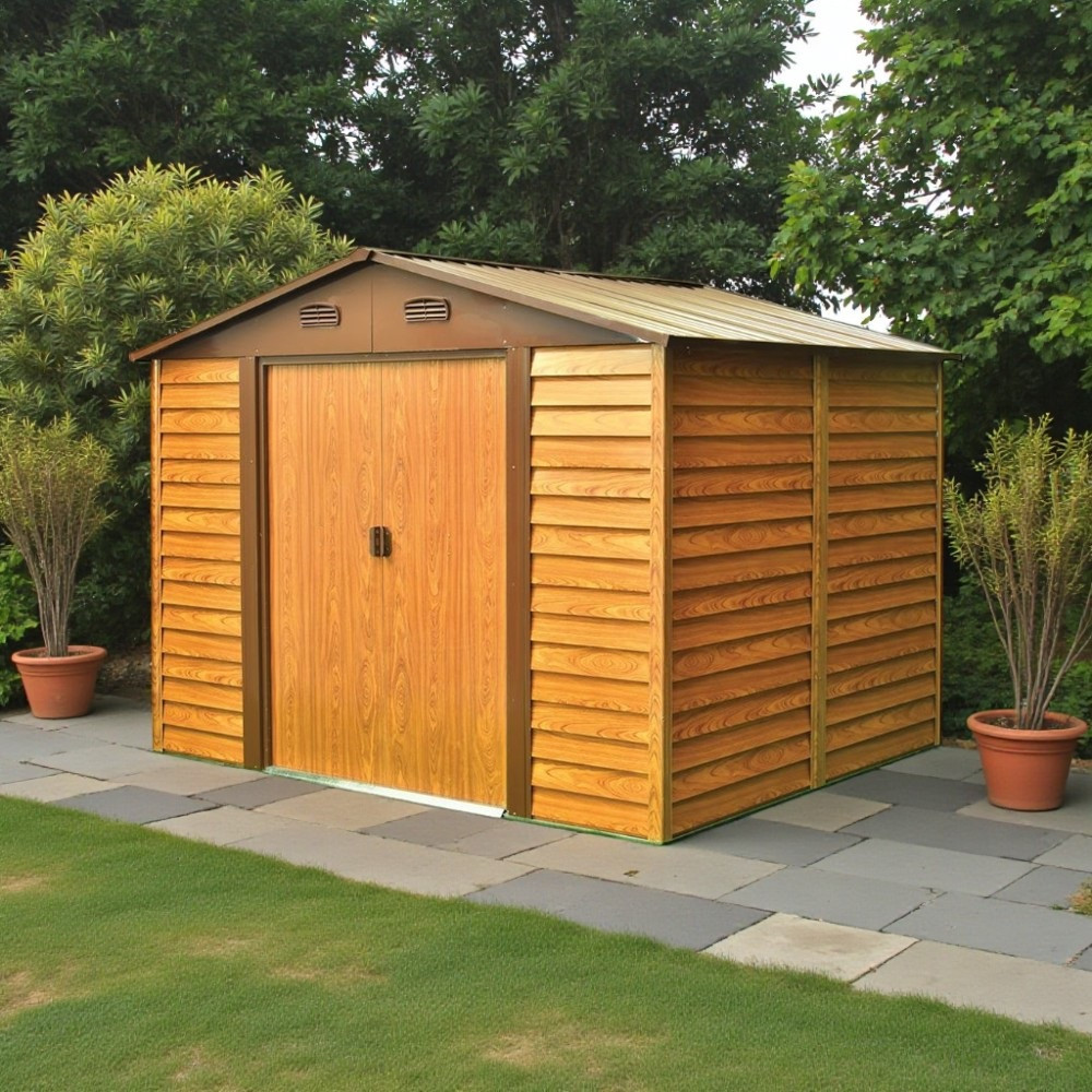A Strend Pro kerti fémház ideális választás, ha rendezett, biztonságos és időjárásálló tárolóhelyet keresel szerszámaidnak, kerti bútoroknak vagy kerékpároknak. Külső mérete 278 x 238 x 215 cm, így tágas belső teret kínál, miközben a barna, fahatású külső harmonikusan illeszkedik bármely kert stílusához. 0,25 mm vastag festett acéllemezei és 0,6 mm-es horganyzott vázszerkezete ellenáll a rozsdának, az erős szélnek és a mechanikai hatásoknak. A két tolóajtó 127 x 171 cm-es nyílása kényelmes bejutást biztosít, a négy szellőzőnyílás pedig megfelelő légáramlást teremt, hogy elkerüld a párásodást.