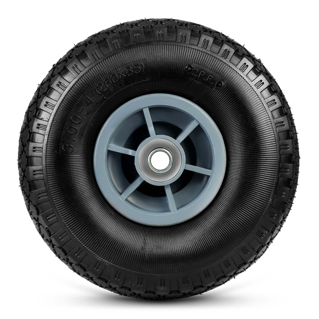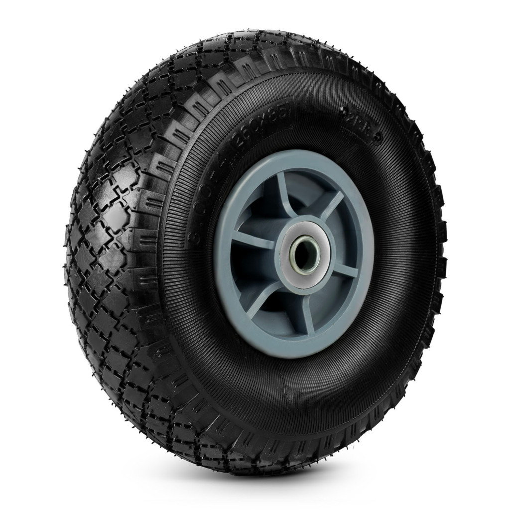 A robusztus gumiprofil hatékonyan csillapítja a rázkódást, így kíméli a kocsit és a rakományt. A 17 mm-es csapágynyílásnak köszönhetően a kerék pillanatok alatt cserélhető. A könnyű, ámde erősített felni csökkenti az össztömeget, így kevésbé terheli a felhasználót. A belső csővel ellátott abroncs optimális nyomáson használva hosszú élettartamot és egyenletes gördülést biztosít.
