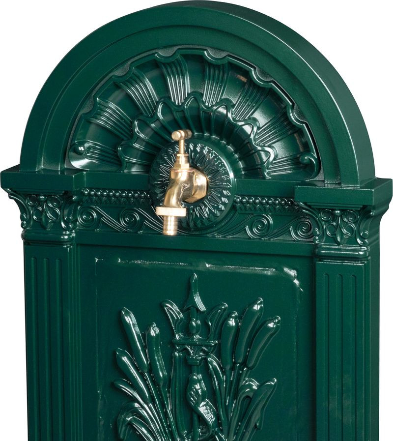 Ez a dekoratív fali mosdó a praktikusságot ötvözi a klasszikus dizájnnal. A 83 cm-es magasság kényelmes használatot biztosít, a bordázott csepptálca felfogja a vízpermetet, így a környék száraz marad. Az alumínium szerkezet nem rozsdásodik, minimális karbantartást igényel, a 6,93 kg-os tömeg pedig stabil tartást ad, mégis könnyen felszerelhető. Akár locsoláshoz, akár gyors kézmosáshoz csatlakoztatod, mindig tiszta vizet és rendezett kertet kínál.