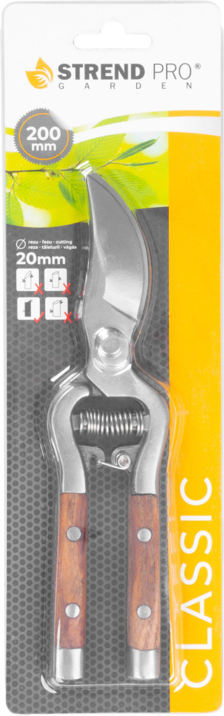 A Strend Pro P1013 kerti olló 200 mm-es hosszával precíz, tiszta vágást biztosít metszéshez, bokrok formázásához vagy virágok szüreteléséhez. Rozsdamentes acél pengéje kovácsolt felületű, tükörfényesre polírozott, így könnyedén siklik az ágakon, ellenáll a korróziónak és a gyanta lerakódásának. A vörös árnyalatú, finoman polírozott fa markolat természetesen simul a kézbe, stabil fogást és elegáns megjelenést nyújt a kerti munkák során.