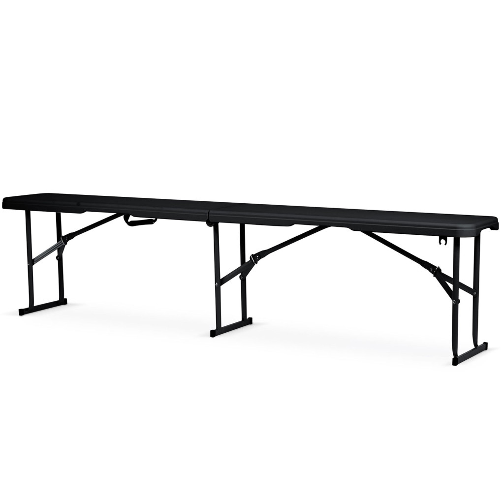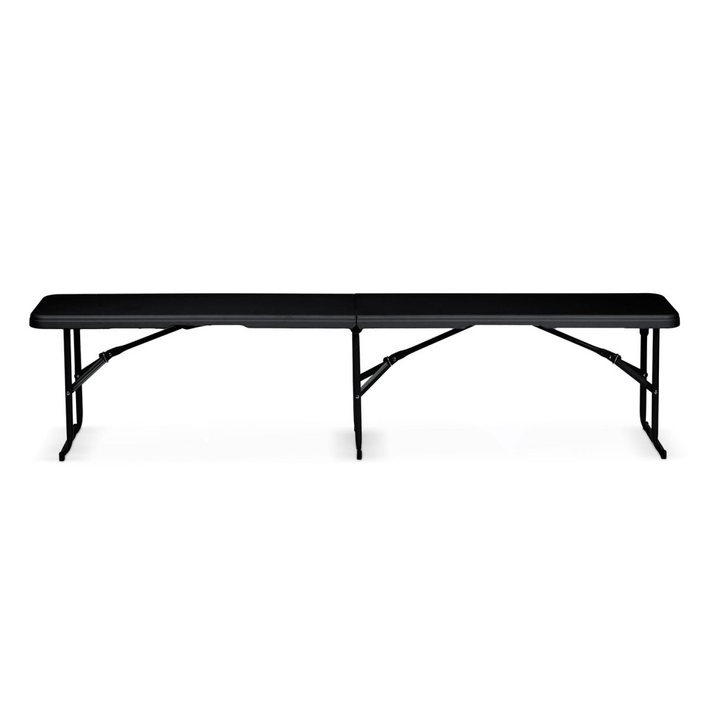 A Plonos 180 cm-es összecsukható kerti pad azonnali ülőhelyet teremt baráti összejövetelekhez, családi grillpartikhoz vagy nagyszabású vendéglátáshoz. Letisztult fekete felülete és porszórt acélváza ellenáll az időjárásnak, miközben kényelmet és stabilitást nyújt több személy számára. Középen félbehajtható, így praktikus kofferré alakítható, a beépített fogantyú pedig megkönnyíti a 8,35 kg-os pad mozgatását és tárolását.