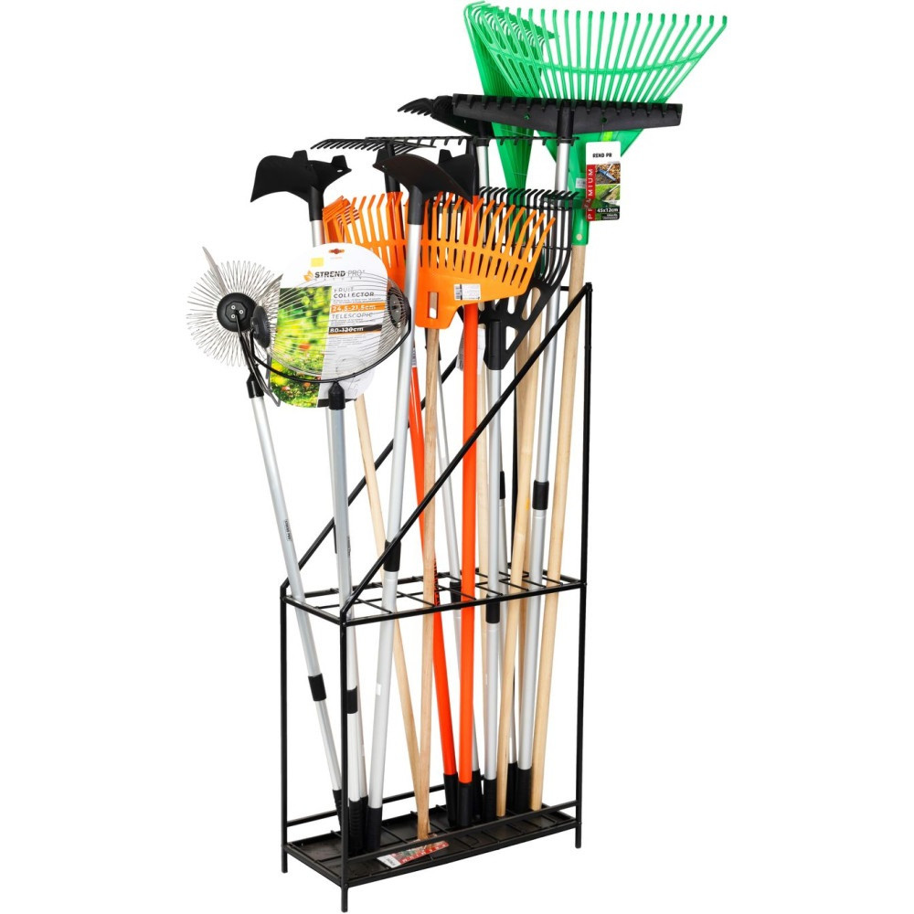 Teremts könnyedén rendezett, átlátható munkateret a Strend Pro szerszámtartó állvánnyal! A 60x24x120 cm-es, masszív fekete fémszerkezet két tágas polcot és döntött tartókeretet kínál, így a hosszú nyelű lapátok, gereblyék és seprűk nem borulnak fel, a kisebb eszközök pedig egy mozdulattal elérhetők. A mindössze 6,04 kg-os, mégis robusztus állvány stabilan áll a garázsban, pincében vagy kerti fészerben, és pillanatok alatt rendet varázsol a szerszámkavalkádból.