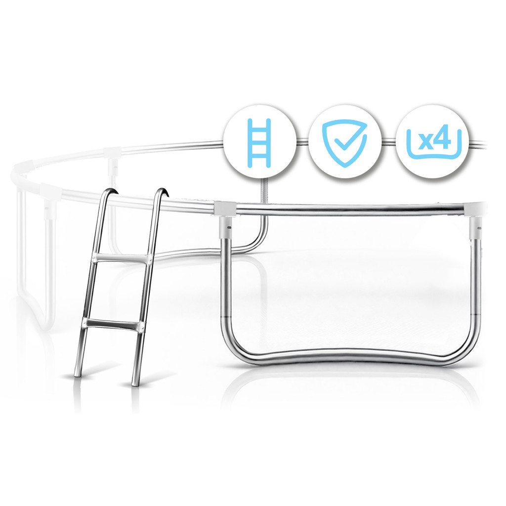 Prémium minőségű, UV-álló anyagokból épül, így a tűző nap és a záporok sem rövidítik meg az élettartamát. A hosszabb, erősebben feszülő rugók lágy, de lendületes pattogást kínálnak, ami kíméli az ízületeket és fokozza a játékélményt. Az 80 cm-es padlószint-emelés ideális magasságot ad a tökéletes elrugaszkodáshoz, miközben a háló 360°-os védelme kizárja a kifelé esés veszélyét. A gondosan illesztett csatlakozások és a korrózióálló felület hosszú távon megőrzik a trambulin feszességét és biztonságát.