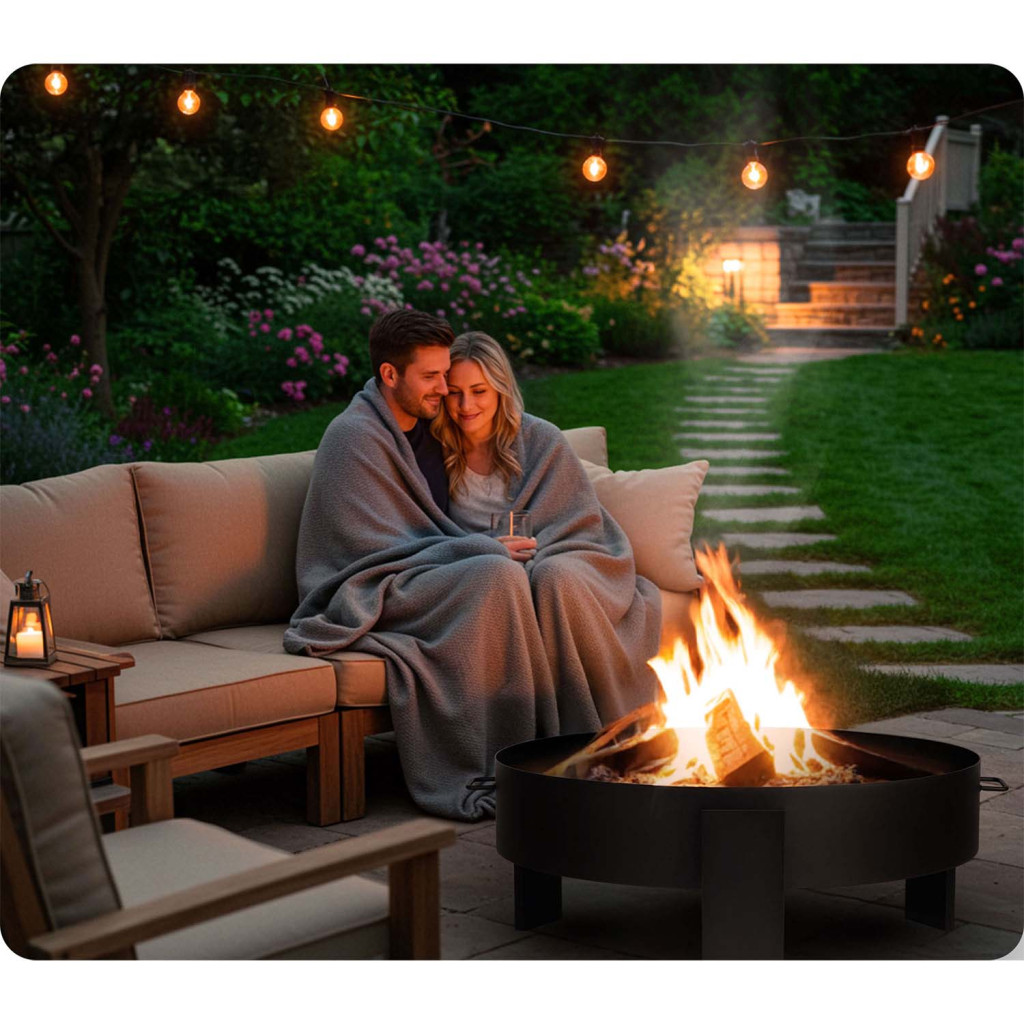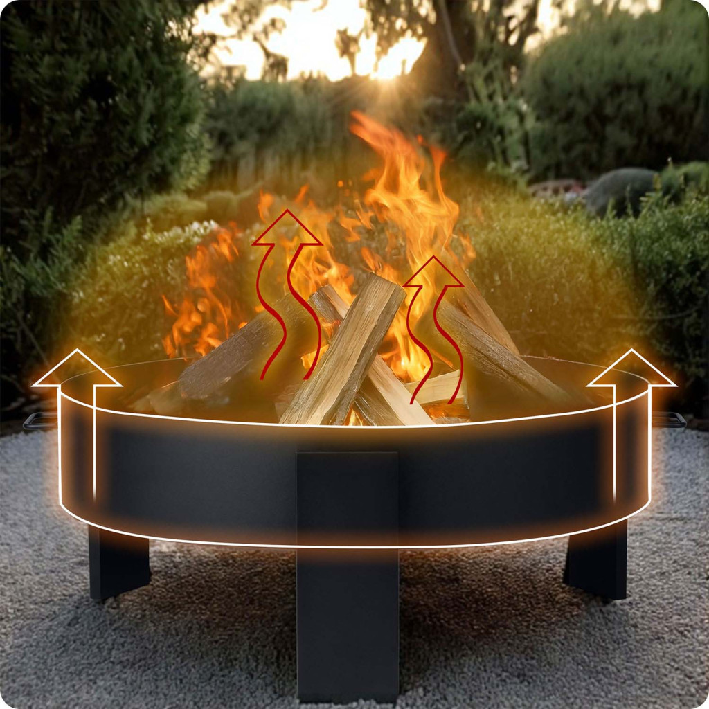 Ez a tűzrakó tál nemcsak meleget ad, hanem egyben multifunkciós kerti dísz is: köré gyűlve baráti beszélgetések, szalonnasütések, marshmallow-pirítások válhatnak igazi élménnyé. Masszív acélszerkezete ellenáll az időjárásnak, a tágas, 80 cm-es belső térben pedig nagyobb fahasábok is kényelmesen elférnek, így kevesebb utánpótlásra lesz szükség. A belső tartórudak biztos légáramlást garantálnak a gyors begyújtáshoz, a peremes kialakítás pedig védi a parazsat a szél szórásától.