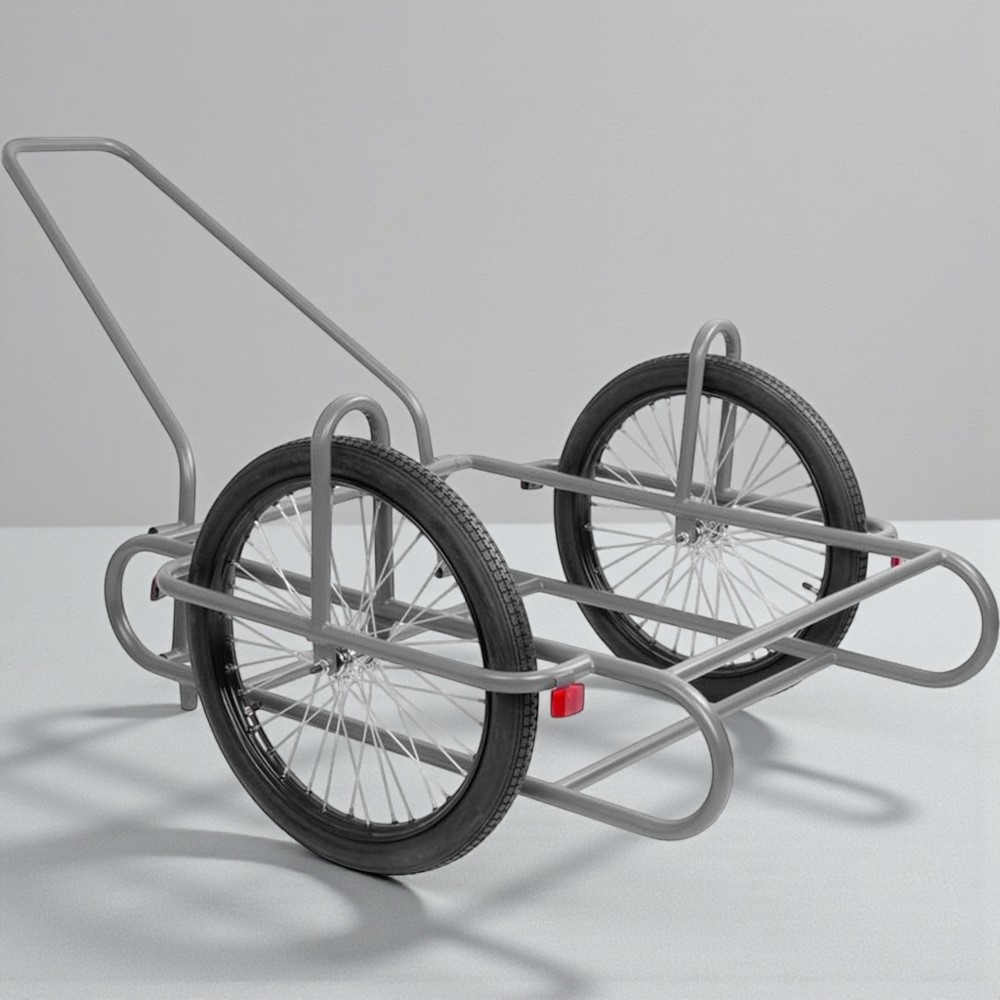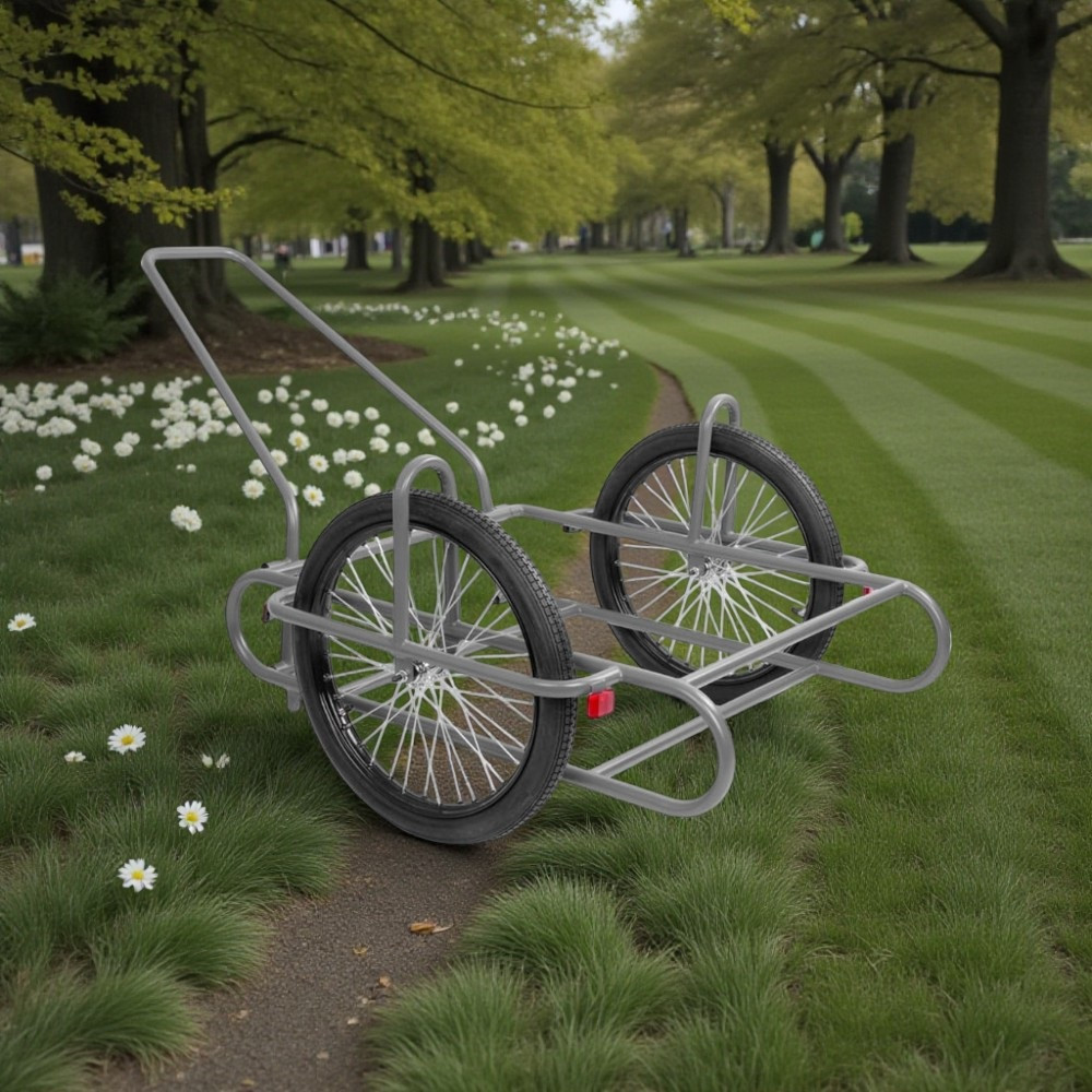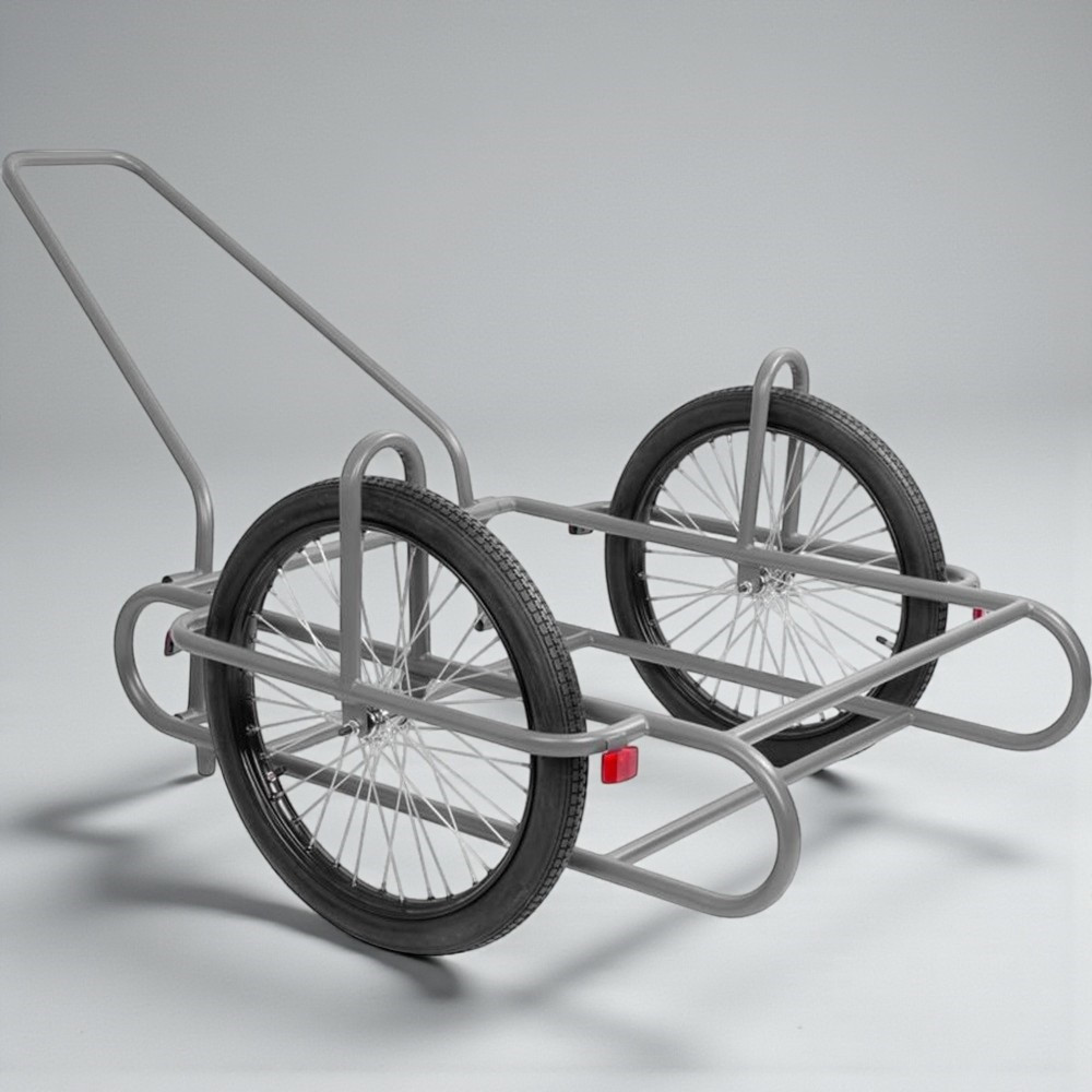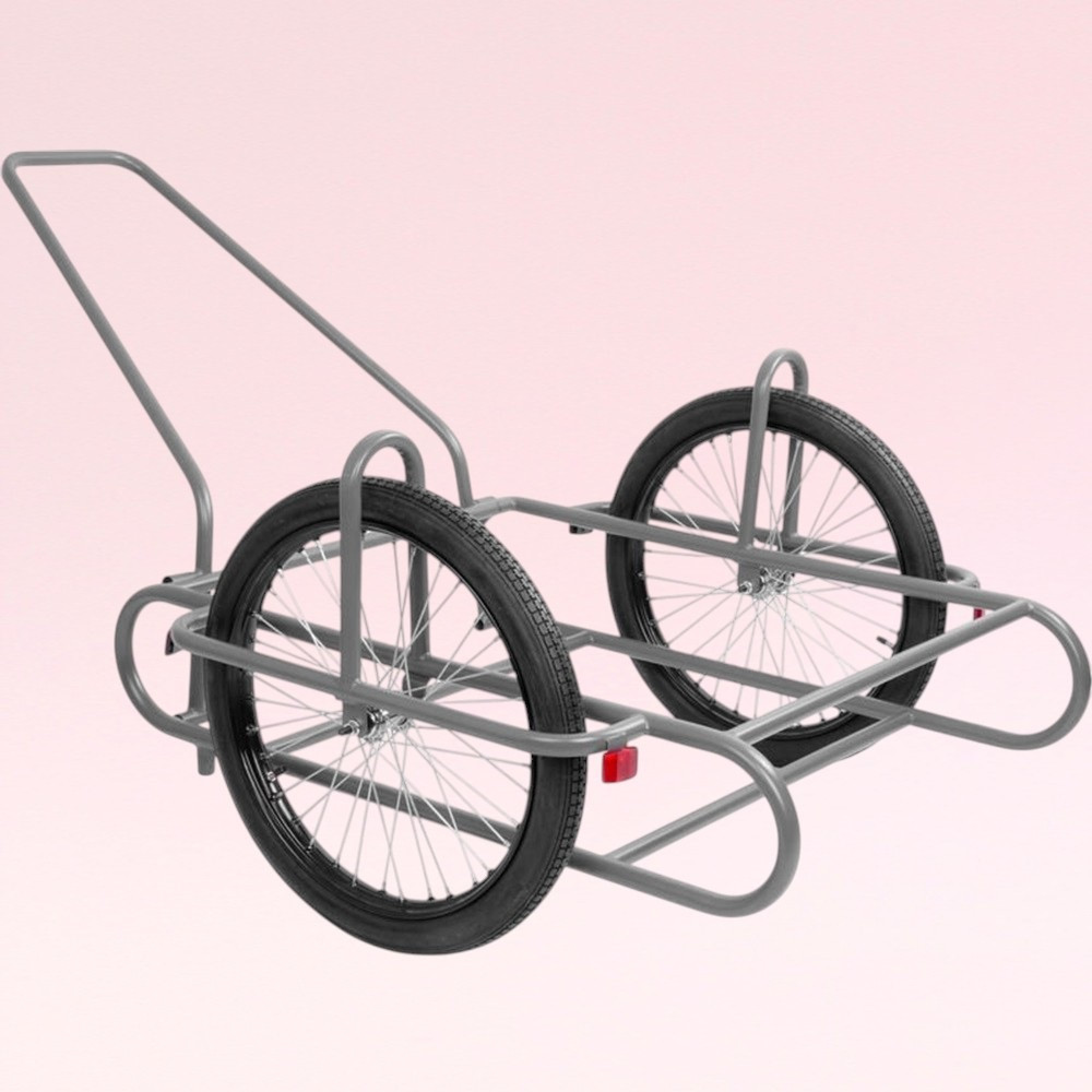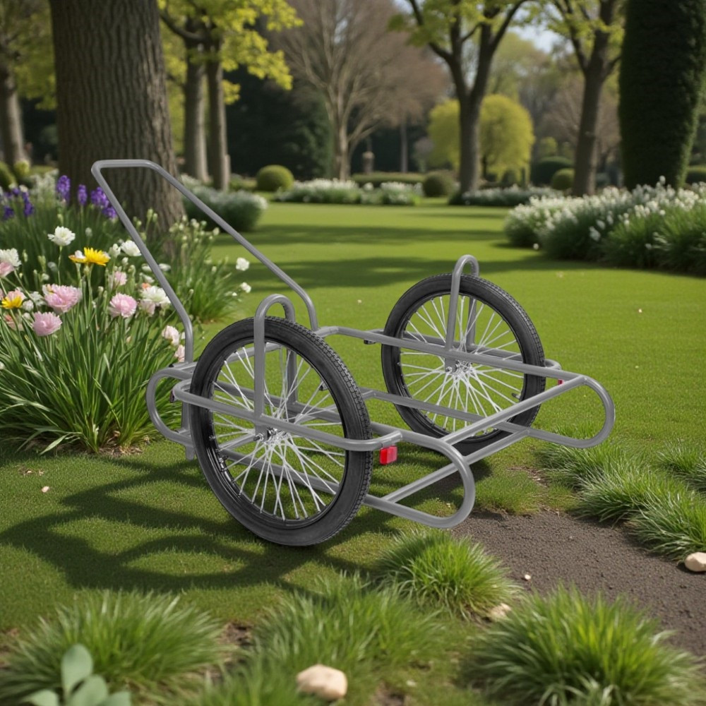 A nagy átmérőjű, küllős kerekek a felfújható gumival minimális erőbefektetéssel gurulnak még egyenetlen talajon is, így kímélik a hátad és az ízületeidet. A teljes váz porfestett felülete ellenáll a rozsdának, ezért kültéren is tartós marad. A kerekek mögé szerelt piros prizmák fokozzák a láthatóságot szürkületben, a körbefutó védőcső pedig megóvja a rakományt a sérüléstől és a megcsúszástól.