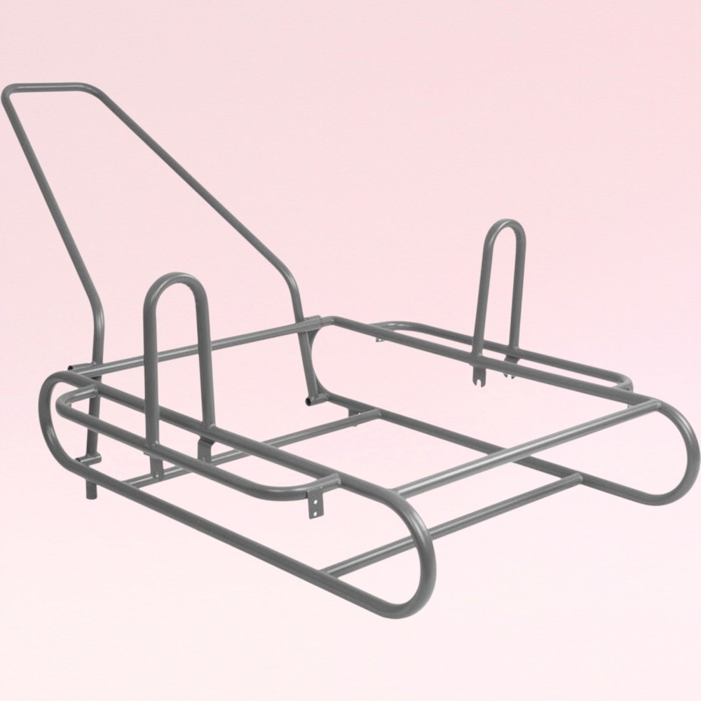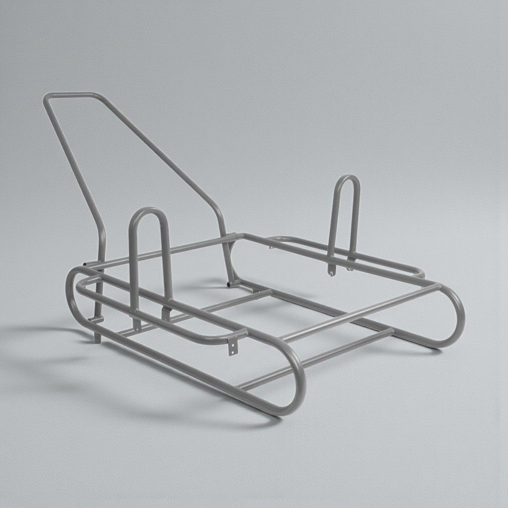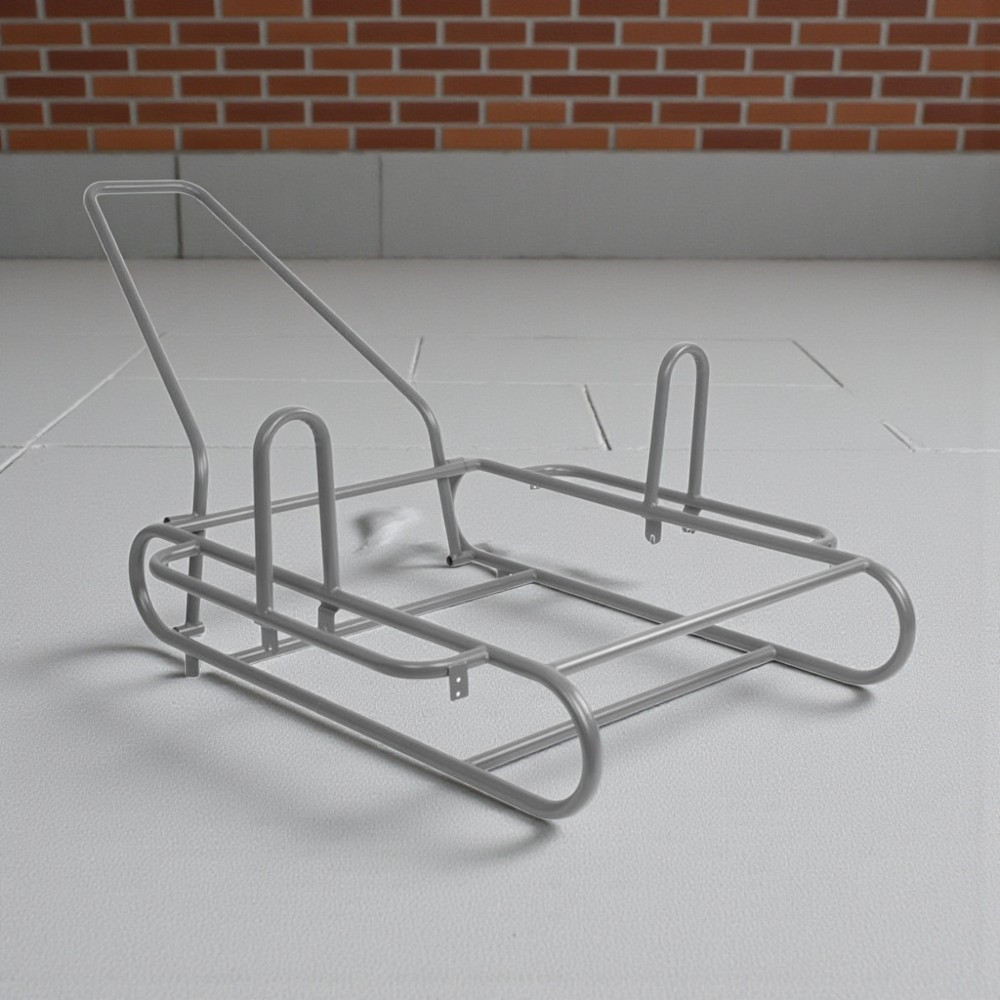 Az univerzális keret rugalmasan illeszthető különféle kerekekhez, így kemény raktári padlón és egyenetlen kültéri terepen is hatékonyan használható. A lekerekített peremek megakadályozzák a rakomány sérülését, a több ponton hegesztett merevítők pedig hosszú távon is stabil tartást adnak. Kompakt kialakítása révén a keret könnyen elfér furgonban vagy műhelypolcon.