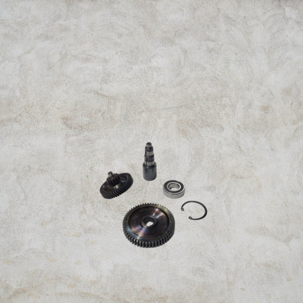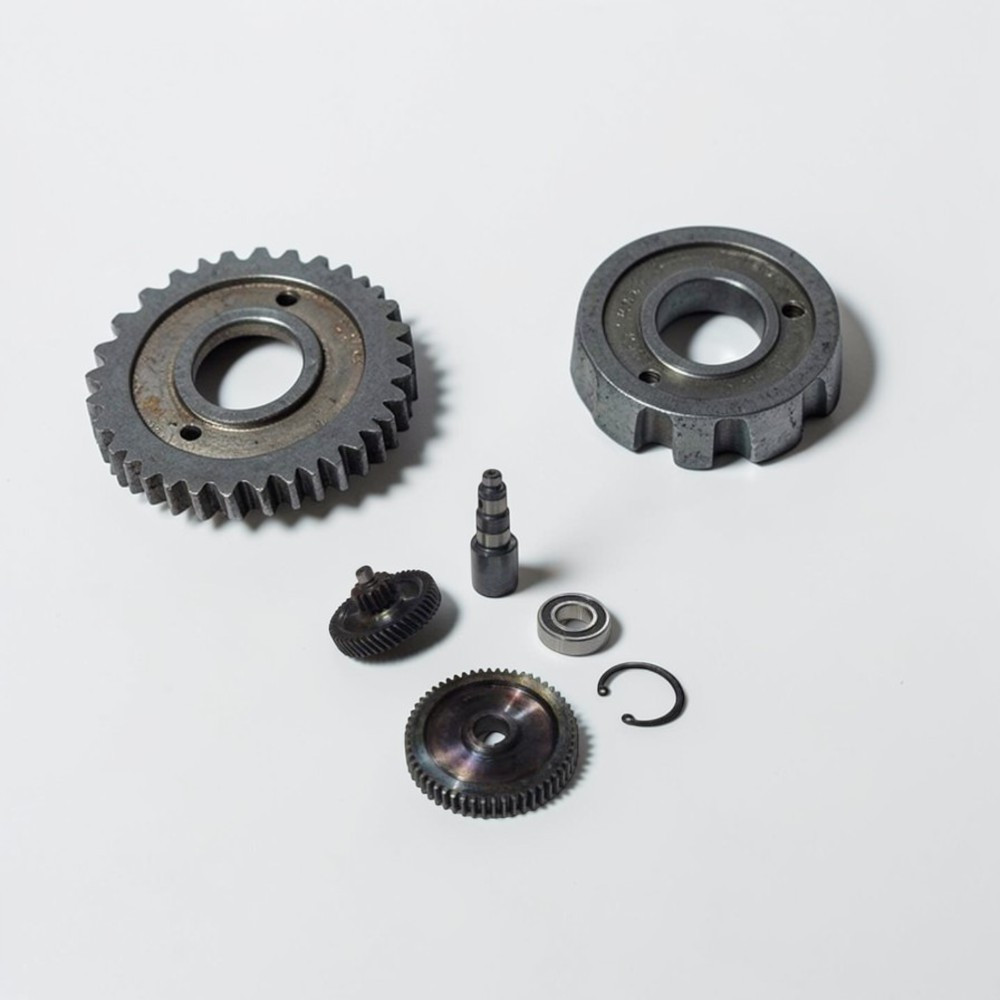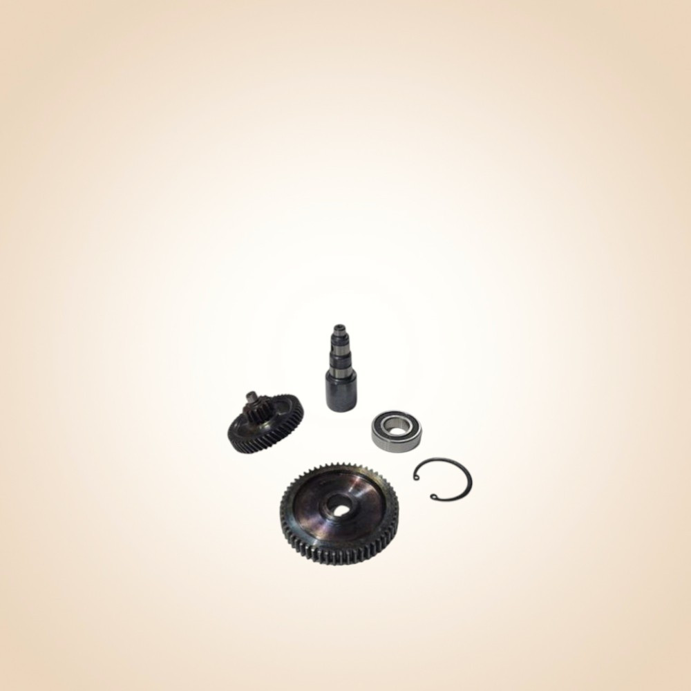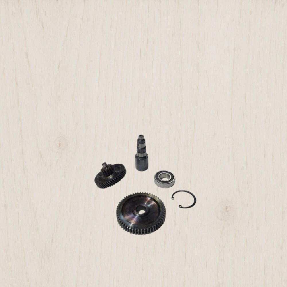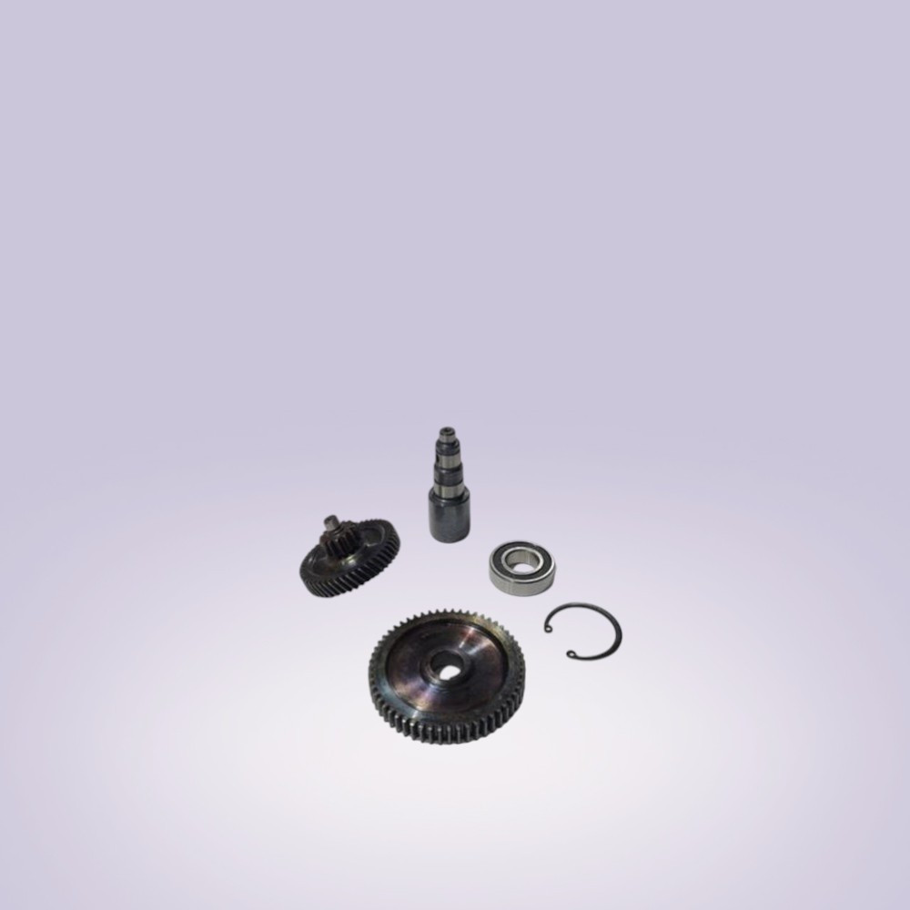 • Komplett megoldás: nagy és kis fogaskerék, tengely, csapágy, rögzítő gyűrű egy csomagban