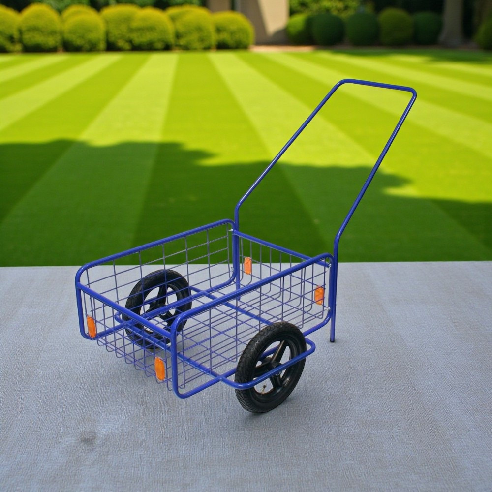 Az 80 kg-os teherbírás bőven elegendő zsákok, csomagok, tüzifa vagy építőanyag mozgatásához, miközben a kocsi önsúlya csak 10 kg, így üresen is könnyedén kezelhető. A 290 mm-es, pneumatikus kerekek ütéscsillapítanak, ezért a rakomány kevésbé sérül, te pedig kevésbé fáradsz el. A golyóscsapágyazott 12 mm-es tengely selymes futást biztosít, a dróthálós oldalfalak pedig megakadályozzák, hogy a kisebb tárgyak lepotyogjanak útközben. A kivehető fogantyú miatt lapra szerelve is elfér az autó csomagtartójában.
