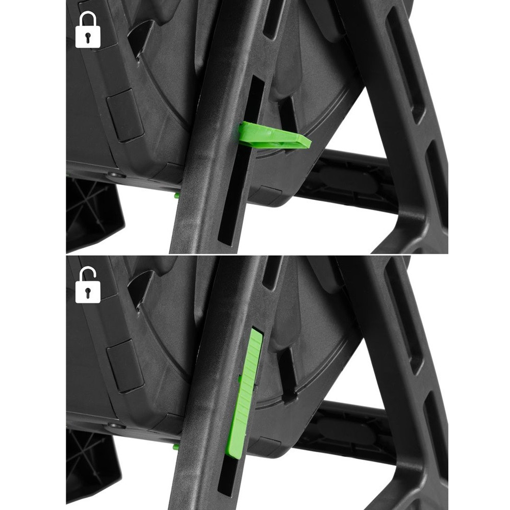 Az emelt, lábakra szerelt dob tehermentesíti a hátat, hiszen nem kell a talaj fölé hajolnod a keveréshez vagy az ürítéshez. A dob minden fordításkor átkavarja a beltartalmat, így a hasznos baktériumok gyorsabban dolgoznak, a kellemetlen szagok pedig minimálisra csökkennek. A műanyag falak sötét színe elnyeli a napfényt, ami melegen tartja a belső közeget, így egész évben lendületben tarthatod a komposztálást. A stabil konstrukció időjárásálló, ezért bátran kint hagyhatod a kertben hóban, esőben, tűző napon egyaránt.