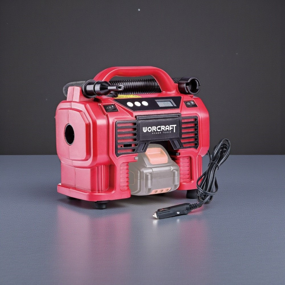 A Worcraft CAC-S20LiA ShareSYS légkompresszorral bárhol, bármikor gondoskodhatsz a megfelelő guminyomásról. A 20 V-os akkuról vagy a 12 V-os autós aljzatról működtethető készülék 160 psi-ig (11 bar) pumpál, 360 l/perc légszállítással. A 82 cm-es felfúvó- és 36 cm-es szívótömlőnek köszönhetően autó-, motor- és kerékpár-abroncsok, valamint labdák, matracok felfújása és leeresztése is gyerekjáték. A beépített LED világítás sötétben is pontos munkát tesz lehetővé, a mindössze 2,03 kg-os súly pedig egyszerű hordozhatóságot biztosít.