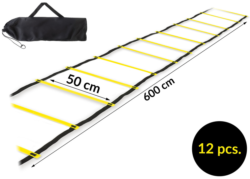 Fejleszd villámgyors lábmunkádat és testtudatodat a Neo-Sport NS-967 koordinációs létrával! A 6 m hosszú eszköz strapabíró nejlon hevederre fűzött, élénksárga műanyag fokokból áll, így jól látható akár gyepen, akár csarnokpadlón. A fokok közötti távolság egyszerűen állítható, így kezdőtől a profi sportolóig mindenki a saját ritmusára szabhatja a gyakorlatokat. Mindössze 360 g-os súlya és kompaktra összehajtható kialakítása miatt bárhová magaddal viheted, az edzőtáboroktól a parkig.
