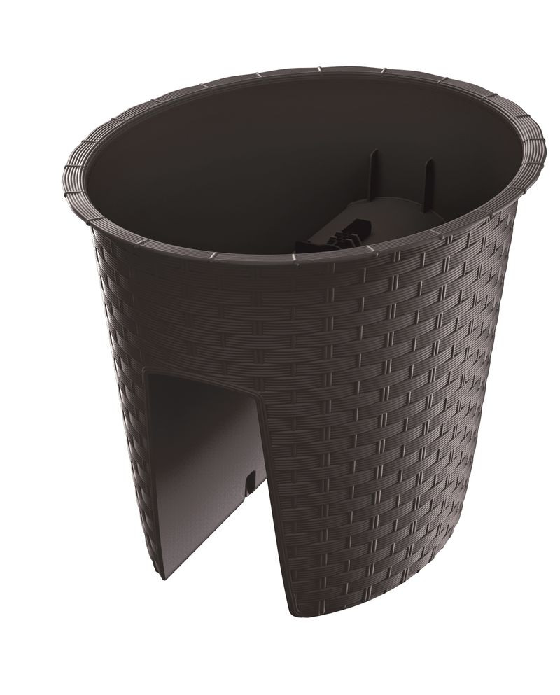 Helytakarékos kialakítása lehetővé teszi, hogy az erkély korlát külső vagy belső oldalán is elférjen, így plusz felületet nyersz a zöldítéshez. A fonott hatású, barna felület mediterrán bájt visz a városi környezetbe, ugyanakkor ellenáll a perzselő napfénynek és a tél zord fagyának. A beépített vízelvezető nyílások megelőzik a pangó vizet, óvva a növények gyökérzetét a káros túlöntözéstől.