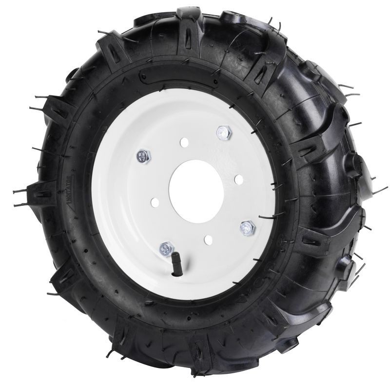 Az erősített gumikeverék és a mély futóminta együttese biztosítja, hogy a kerék ne csússzon meg lazább talajban sem, így kevesebb energia megy kárba talajművelés közben. A fújható kivitel elnyeli a rázkódásokat, kíméli a gépet és a kezelő karjait. A 8,07 kg-os össztömeg kedvező egyensúlyt teremt a tapadás és a manőverezhetőség között, így a kultivátor egyenletesen húz, akár gyomirtásról, akár burgonyasorok kihúzásáról van szó.