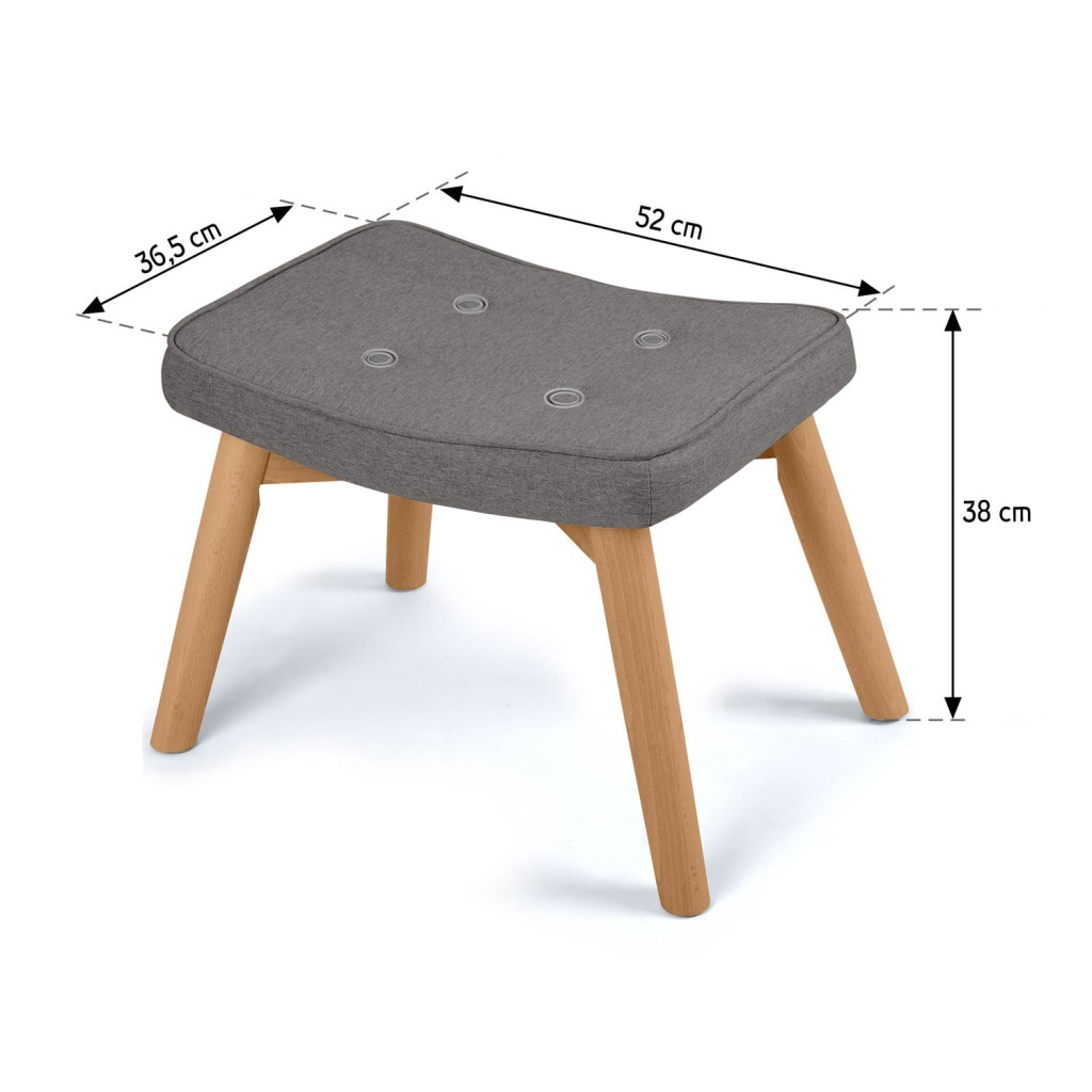 Kompakt mérete ellenére szinte észrevétlenül emeli a pihenés minőségét: tehermentesíti a lábakat, javítja a vérkeringést, és ellazítja a hát alsó szakaszát. A magas sűrűségű hab párnázás hosszú idő után is megőrzi formáját, a bükkfa lábak csúszásgátló talppal védik a padlót. A sötétszürke árnyalat könnyen kombinálható más bútorokkal, így bármelyik ülőgarnitúrád mellé tökéletes választás. Praktikus kiegészítő, amely egyszerre funkcionális és dekoratív – így minden otthonba értéket visz.