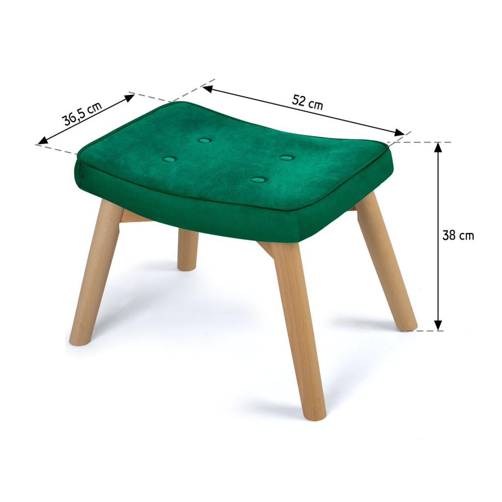 Élvezd a skandináv otthonok letisztult kényelmét a Norse Sofotel sötétzöld lábtartóval! A bársonyos, 220 g/m² sűrűségű poliészter kárpit nemcsak ragyogó megjelenést, hanem puha, kellemes tapintást is biztosít. A természetes fa hatású, masszív lábak stabil tartást adnak, a lábak alján található filcpárnák pedig megóvják a padlót a karcolásoktól. Akár fotelod tökéletes kiegészítőjét keresed, akár egy dekoratív, önálló puffot, az 5,35 kg-os Norse lábtartó stílusosan és kényelmesen emeli fel a pihenést.