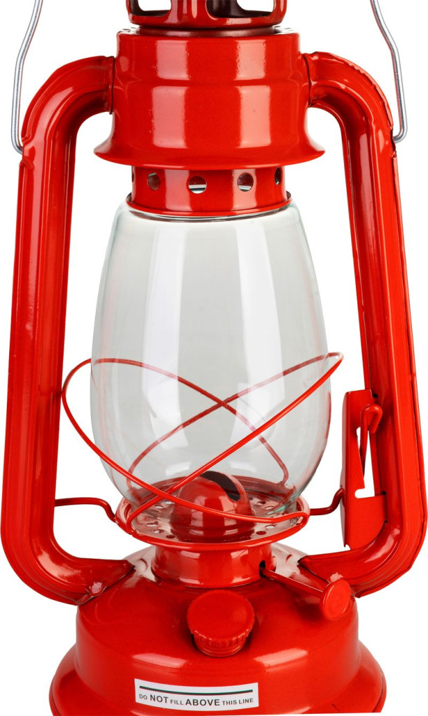 A 30 cm magas, élénk piros petróleumlámpa pillanatok alatt meghitt fénybe borítja a teraszt, a kempingsátrat vagy akár a nappalit. Klasszikus, lakkozott fémváza és vastag üvegpalástja megbízhatóan óvja a lángot a széltől, így világítása stabil, fénye egyenletes. 0,55 kg-os tömegével könnyedén hordozható, a felső fogantyúval pedig bárhová felakasztható. Csak töltsd fel kerozinnal, állítsd be a kanócot, és máris élvezheted a nosztalgikus hangulatot – áram nélkül is.