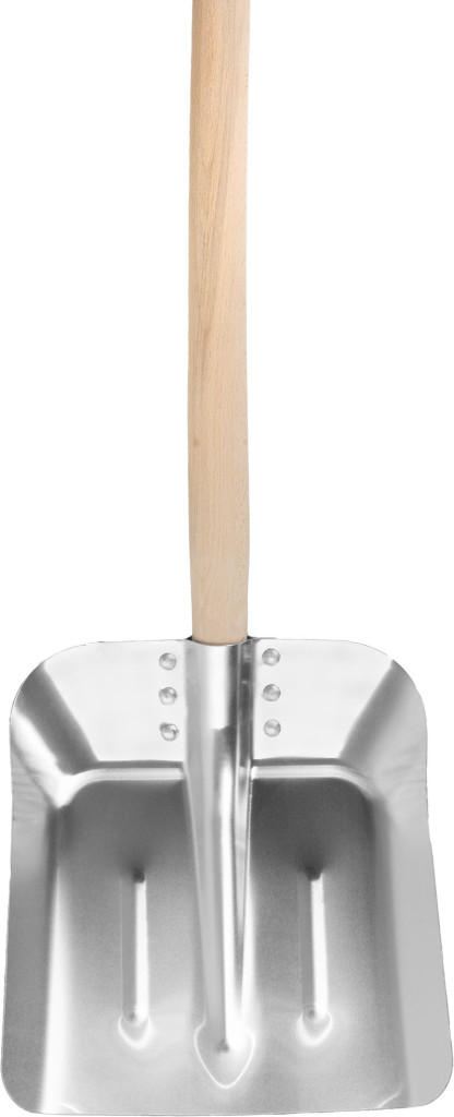 Az alumínium fej könnyedén siklik a talajon, így kevesebb erő szükséges a rakomány felvételéhez. A vékony perem precíz beillesztést tesz lehetővé, legyen az hó, kavics vagy gabona. A fa nyél természetesen illeszkedik a kézbe, csillapítja a rezgéseket, így hosszabb ideig is kényelmes munkát nyújt. A szegecselt fej-nyél kapcsolat stabil, hosszú élettartamot biztosít, míg a korrózióálló felület egész évben megbízható teljesítményt garantál.