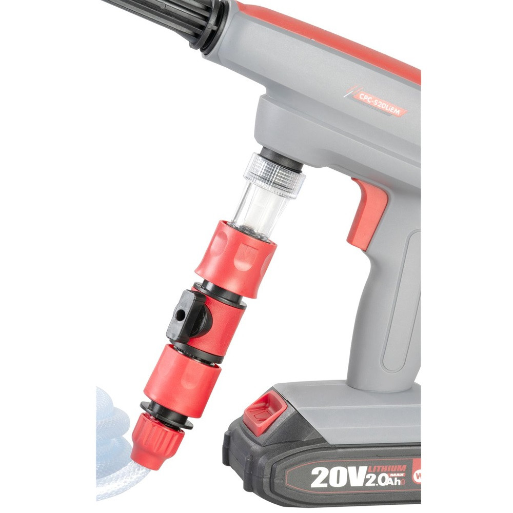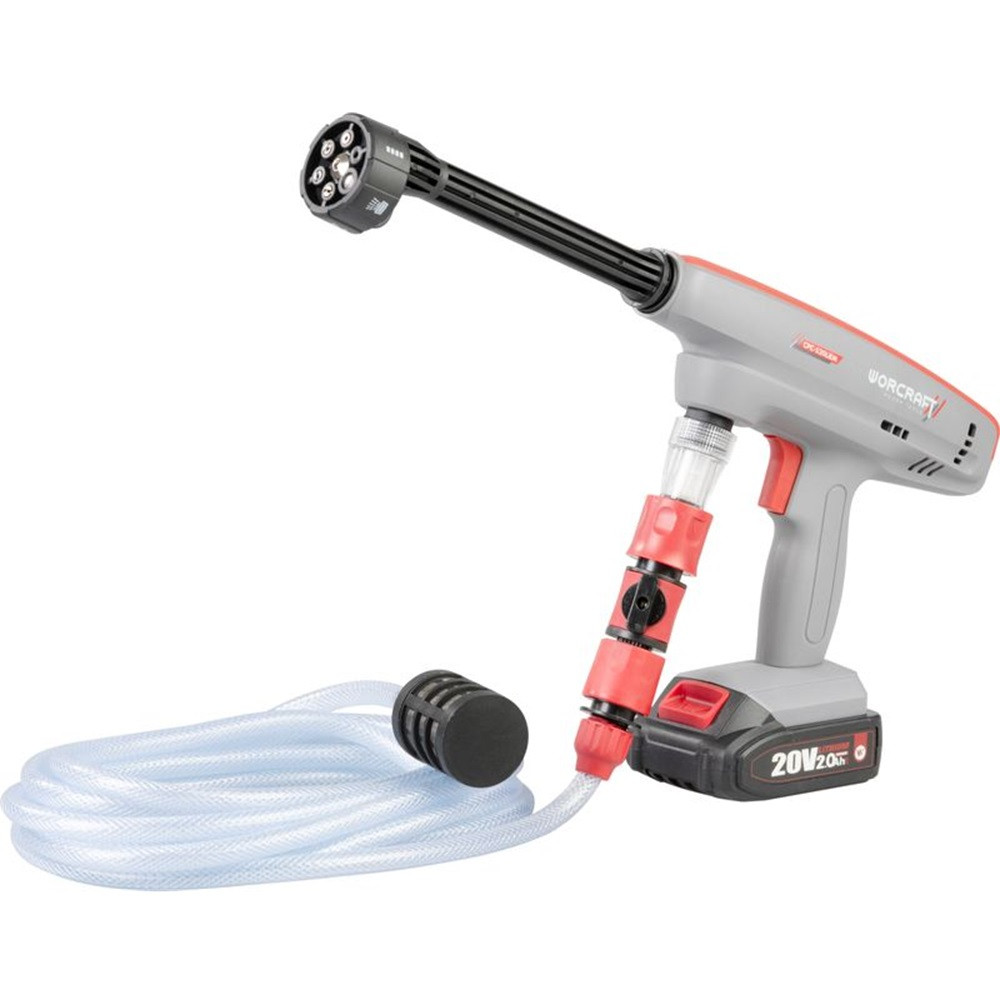 A Worcraft CPC-S20LiEM ShareSYS akkumulátoros nagynyomású pisztoly új szintre emeli a szabadtéri tisztítást. A 20 V-os, 2,0 Ah-s akkumulátor erőteljes, mégis vezetékmentes működést biztosít, így szabadon járhatod körbe az autót, kerékpárt vagy a kerti bútort. Az 1,5 MPa csúcsnyomás akár 4 l/perc vízhozammal párosul, a cserélhető fej pedig öt különböző szórásképet kínál a precíz vagy kíméletes mosáshoz. A 380 ml-es tisztítószer-tartály plusz lendületet ad a makacs szennyeződések ellen, a 5 m-es szívótömlő szűrővel pedig hordóból, vödörből is képes vizet felszívni, így a kerti csap hiánya sem akadály.
