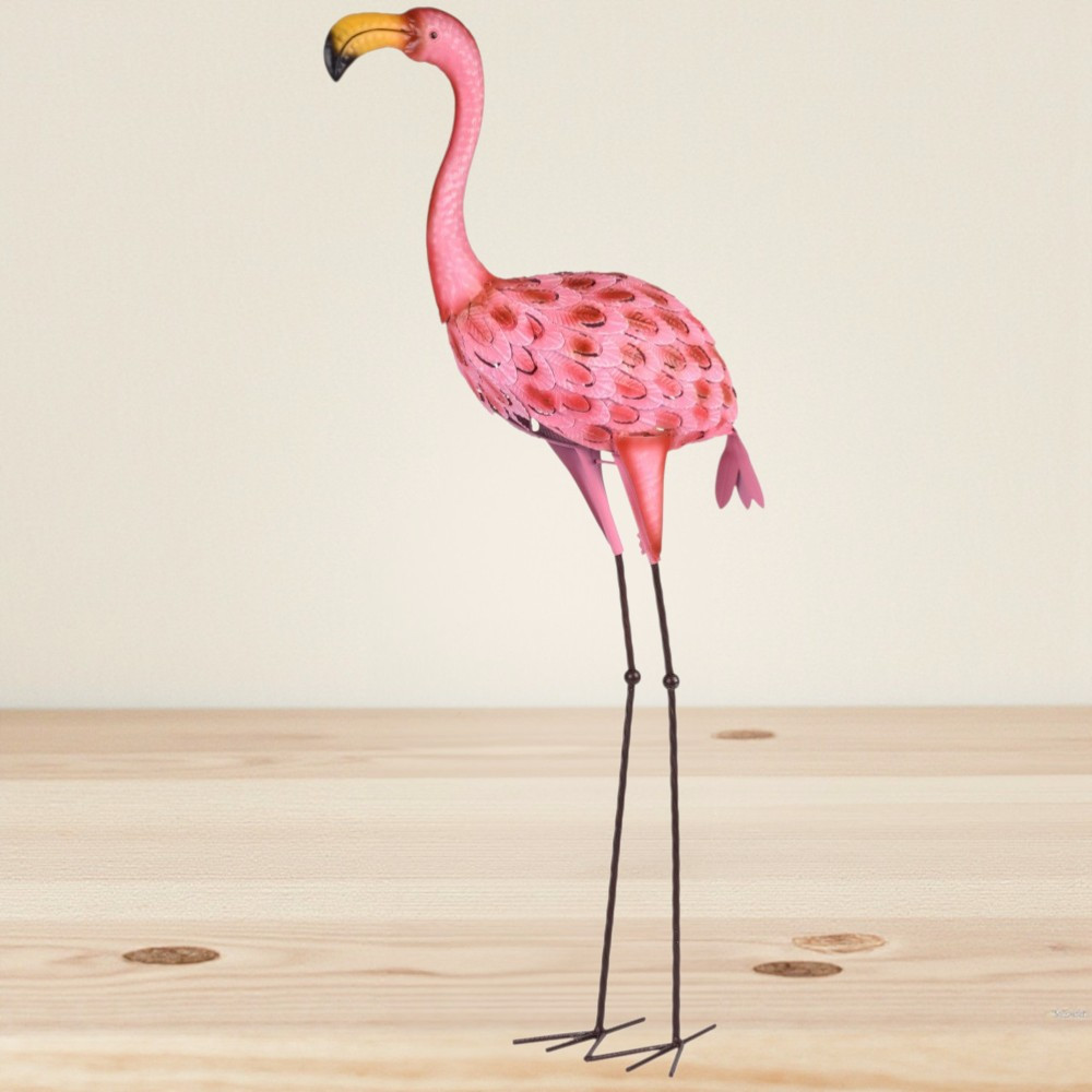 Adj a kertnek vidám, trópusi hangulatot a MagicHome Mecco 6304 Flamingó dekorációval! A 95 cm magas, fém testű flamingó élénk rózsaszín tollmintázattal, sárgába hajló csőrrel és kecses, hosszú lábakkal vonzza a tekintetet. 30 cm-es szélessége és 20 cm-es mélysége révén könnyedén elhelyezhető virágágyásban, cserépben vagy kerti tóparton. A stabil, hegyes végekkel ellátott lábak egyszerűen a talajba rögzíthetők, a masszív fém váz pedig ellenáll az időjárás viszontagságainak.