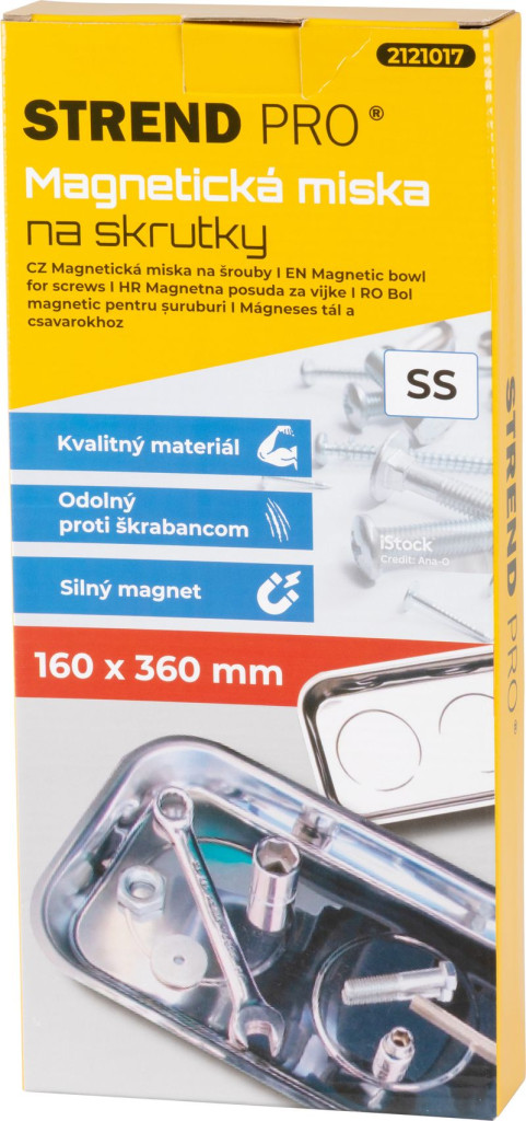 Rendezd profi módon a szereléshez szükséges apró fémalkatrészeket a Strend Pro mágneses tálkával! A 160 × 360 mm-es, téglalap alakú, rozsdamentes acélból készült tálka erős alsó mágnesének köszönhetően biztosan tapad bármely vasfelületre – akár függőlegesen is. Így a csavarok, anyák, alátétek nem gurulnak el, mindig kéznél lesznek, miközben te a munkára koncentrálsz. 1,05 kg-os tömegével stabil, mégis könnyen hordozható segítőtárs.