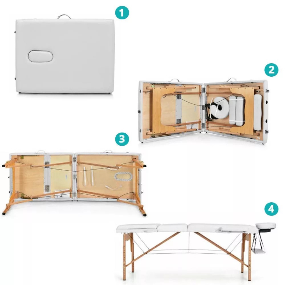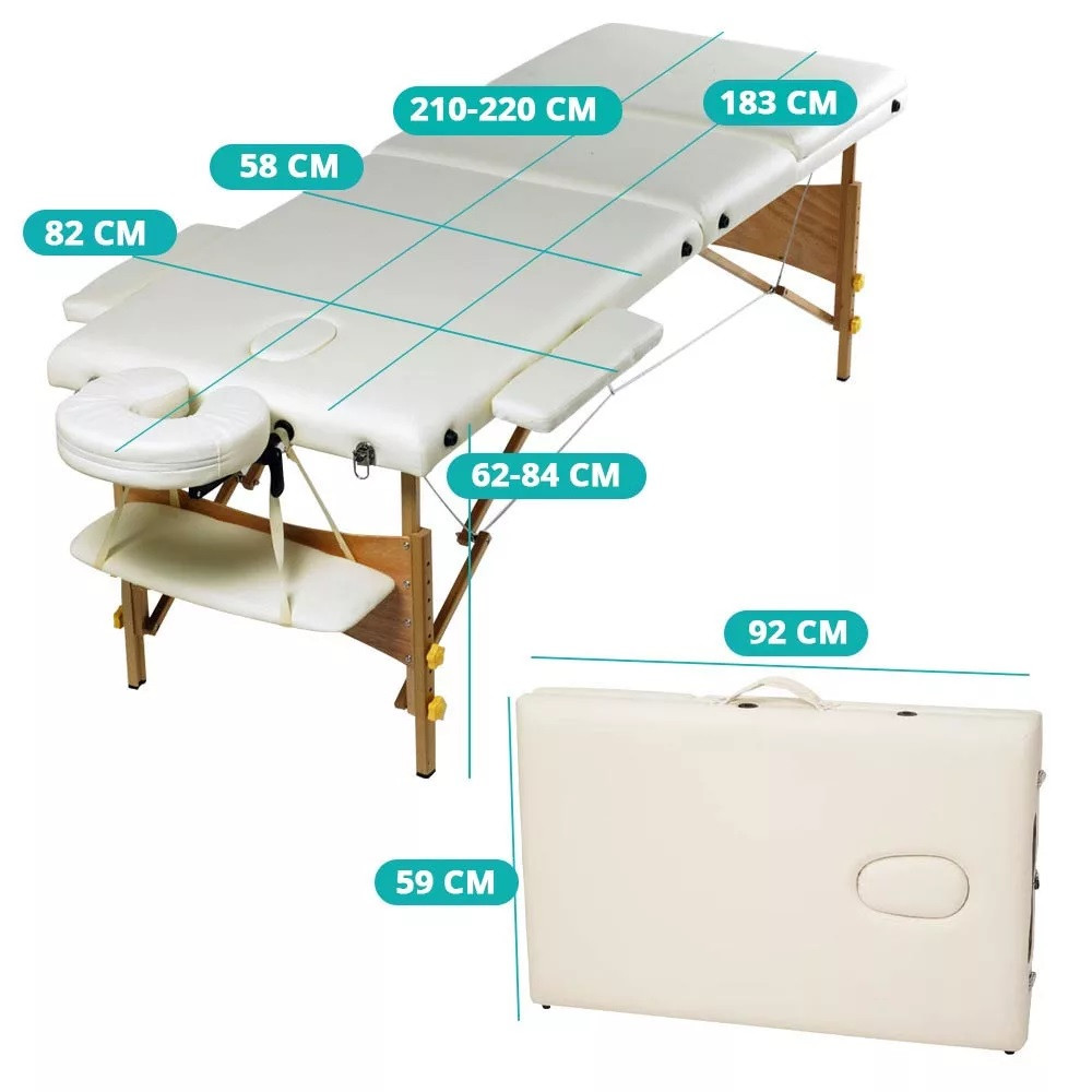 Élvezd a prémium kényelmet és mobilitást a 3 zónás, hordozható masszázsággyal! A 183 cm hosszú, 58 cm széles fekvőfelület vastag, 2,5–5 cm-es szivacsozással engedi, hogy vendégeid teljesen ellazuljanak, miközben a fa váz 150 kg-ig stabil tartást garantál. Magassága 62–84 cm között állítható, így mindig ergonomikus pozícióban dolgozhatsz. A vízálló, olajtaszító vinyl borítás higiénikusan tisztán tartható, az összecsukható kivitel pedig pillanatok alatt szállítható a mellékelt táskában.