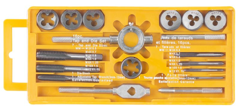 Legyen szó belső vagy külső menet kialakításáról, a Strend Pro SX1016 menetfúró és menetmetsző készlet precíz és gyors megoldást kínál. A 16 részes, strapabíró műanyag kazettába rendezett szett 7-7 darab M3–M12 méretű menetfúrót és metszőlapkát tartalmaz, így a leggyakoribb metrikus menetekhez azonnal rendelkezésre áll minden eszköz. Az edzett acélból készült szerszámok hosszú éltartamot, a recézett fogantyúk stabil kezelést biztosítanak.