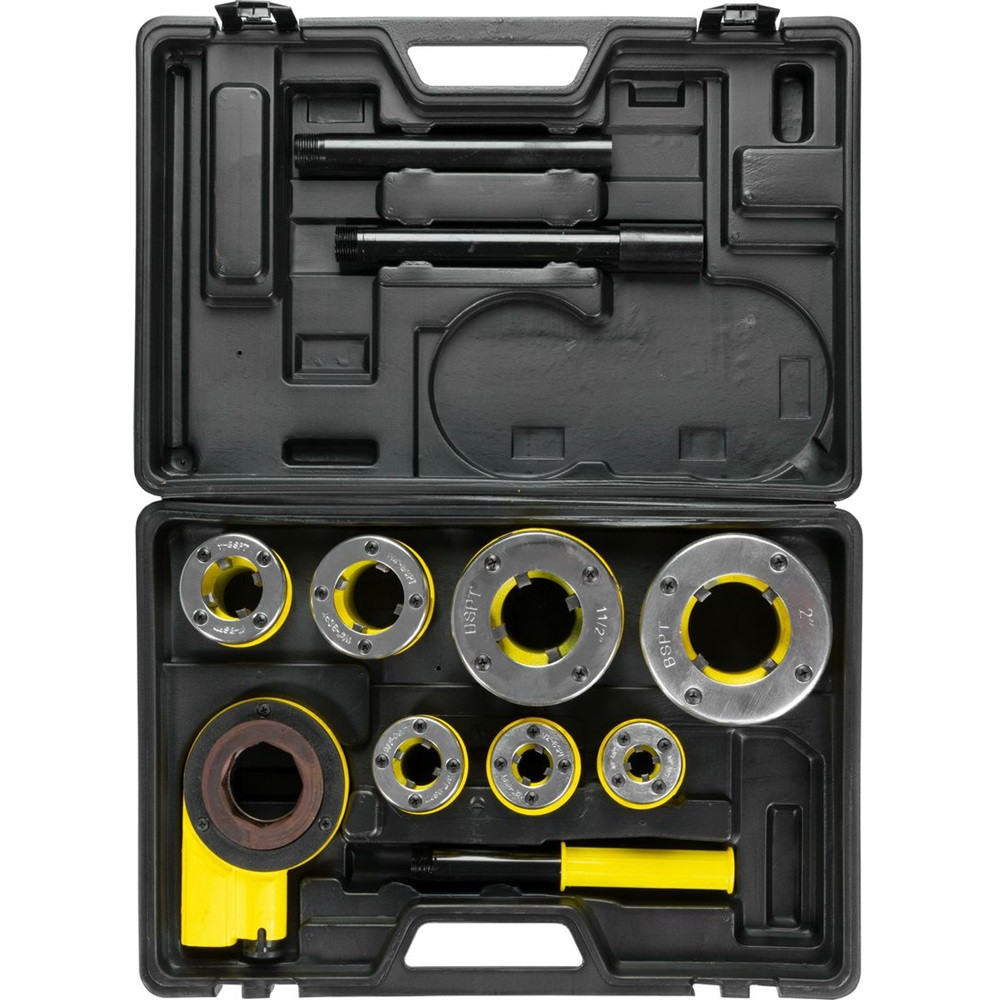 Építs stabil víz-, gáz- vagy fűtésrendszert könnyedén a Strend Pro PP3304.T062 menetvágó készlettel! A 7 részes, 3/8–2 col közötti fejekkel felszerelt szett minden gyakori csőátmérőhöz biztosít precíz, tiszta külső menetet. A keményített acél betétek hosszú élettartamot, a sárga, jól látható ház pedig gyors azonosítást garantál. A hosszabbító karok révén szűk helyeken is hatékony a fogás, míg a masszív, ütésálló műanyag hordtáska védi és rendszerezi a teljes készletet.