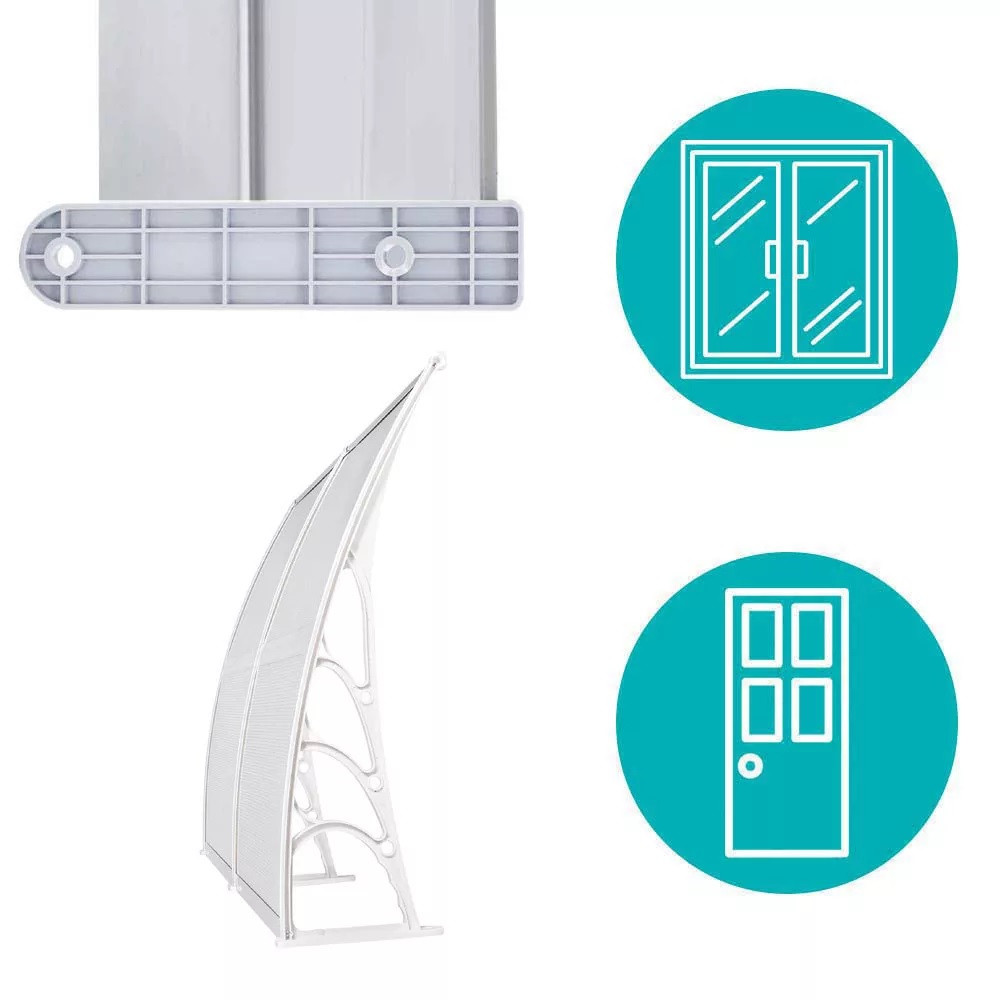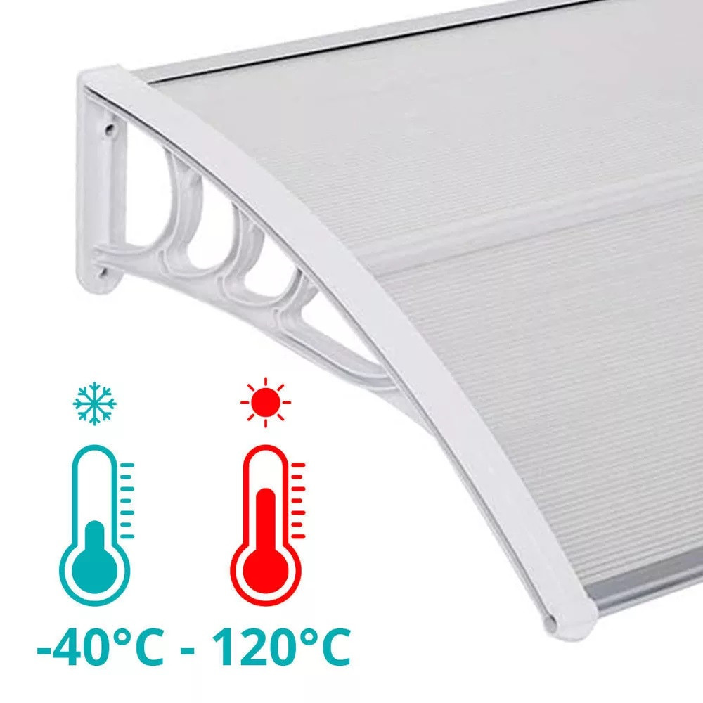 A tartós, UV-álló polikarbonát panel és a stabil polipropilén szerkezet kombinációja hosszú élettartamot garantál, miközben megőrzi az átlátszóságot és ellenáll az időjárás viszontagságainak. Az előtető -40 °C-tól +120 °C-ig hőálló, így egész évben megbízható védelmet nyújt. Egyszerűen felszerelhető, több egység egymás mellé is illeszthető, így nagyobb bejáratok vagy teraszok fölé is ideális. A fehér tartószerkezet letisztult, modern hatást kelt, ami tökéletesen illeszkedik bármilyen épület stílusához.