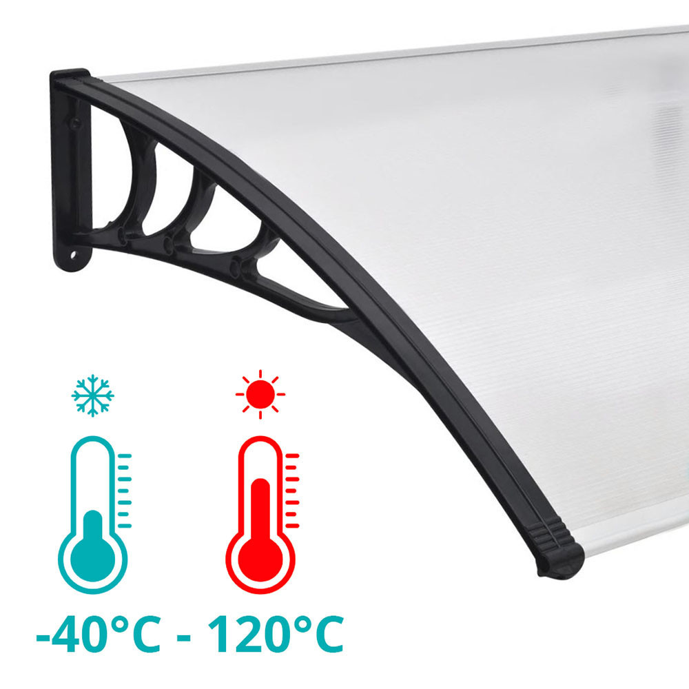 Ez az előtető a praktikum és az esztétika tökéletes kombinációja. Strapabíró polikarbonát panelje UV-álló, így nem sárgul és évekig megőrzi fényáteresztő képességét. A masszív polipropilén tartószerkezet stabilan rögzíti a tetőt, amely -40 °C-tól +120 °C-ig ellenáll a hőmérséklet-ingadozásnak. A fekete szegély modern, elegáns megjelenést kölcsönöz, bármilyen homlokzathoz illeszthető. Könnyen felszerelhető és több egység is egymáshoz illeszthető, így nagyobb bejáratok fölé is telepíthető.