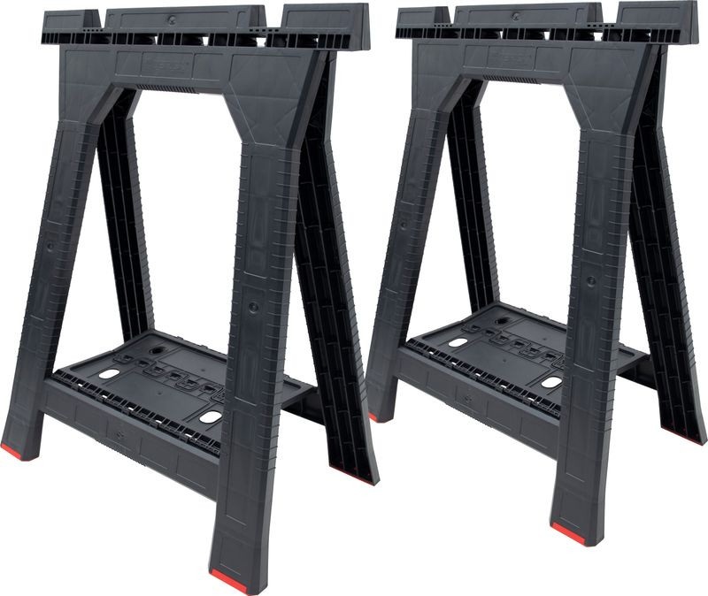 Akár építkezel, akár barkácsolsz, a Bak QBRICK® multifunkciós munkaasztal-állvány párosával pillanatok alatt stabil alapot kapsz. Megerősített műanyag váza és bordázott oldalfalai nagy teherbírást adnak, a piros csúszásmentes talpak pedig megakadályozzák a csúszást. A lábak közti polc a csavarok, mérőszalagok, kéziszerszámok gyors elérését segíti, a vágórések pedig biztonságos felfekvést adnak lécek darabolásához. A 4,79 kg-os 2-es csomag könnyű, mégis masszív, a felső perembe bilincsekkel rögzíthetsz munkalapot.