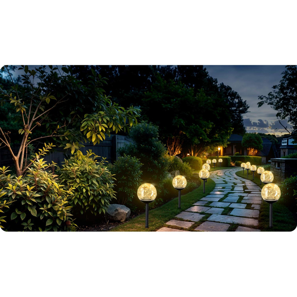 Egy pillanat alatt mesebeli hangulatot varázsolhatsz a kertedbe az Ilumen LS-103 átlátszó napelemes gömb lámpaszettel. A csomagban négy, 40 cm magas, leszúrótüskével ellátott fénygömb található, amelyekbe finom LED-füzér került. Az amorf napelemek nappal elraktározzák a napenergiát, éjjel pedig meleg fehér ragyogással világítják meg az ágyásokat és ösvényeket. Kábelezés nélkül, egyetlen mozdulattal telepítheted, hogy estére már varázslatos fények fogadjanak.