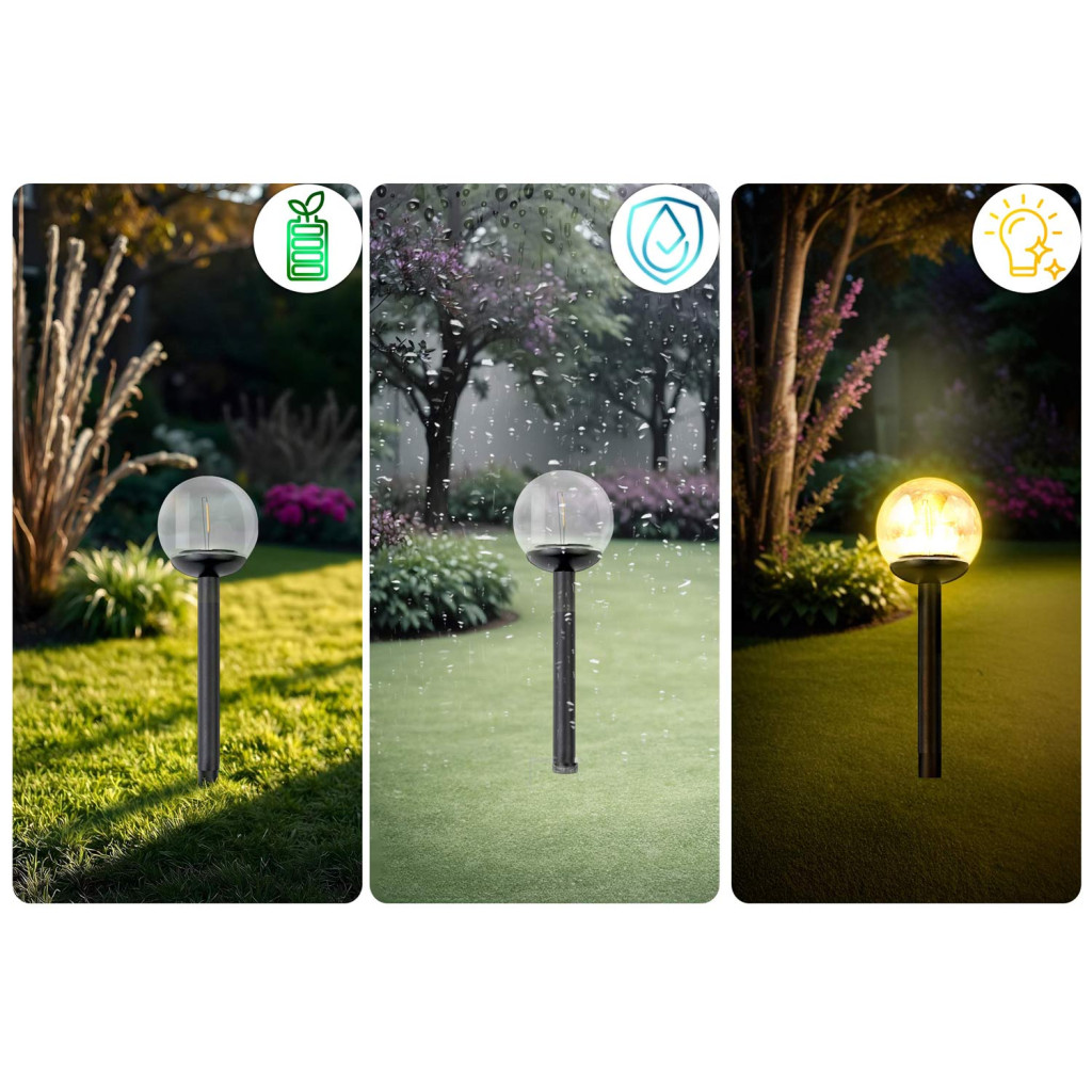Nem kell kábelekkel és villanyszereléssel bajlódnod: a lámpák teljesen önállóan üzemelnek, csupán a nap energiáját használják. Az áttetsző burában izzóhatású LED rejlik, amely meleg, barátságos fényt terít a bokrok, ágyások vagy kerti ösvények fölé. Az amorf panel még felhős időben is képes töltést adni, a fényérzékelő pedig gondoskodik róla, hogy a fény csak sötétedéskor égjen. Így energiatakarékos, fenntartható és mindig készen áll, hogy kertedet ragyogóvá tegye.