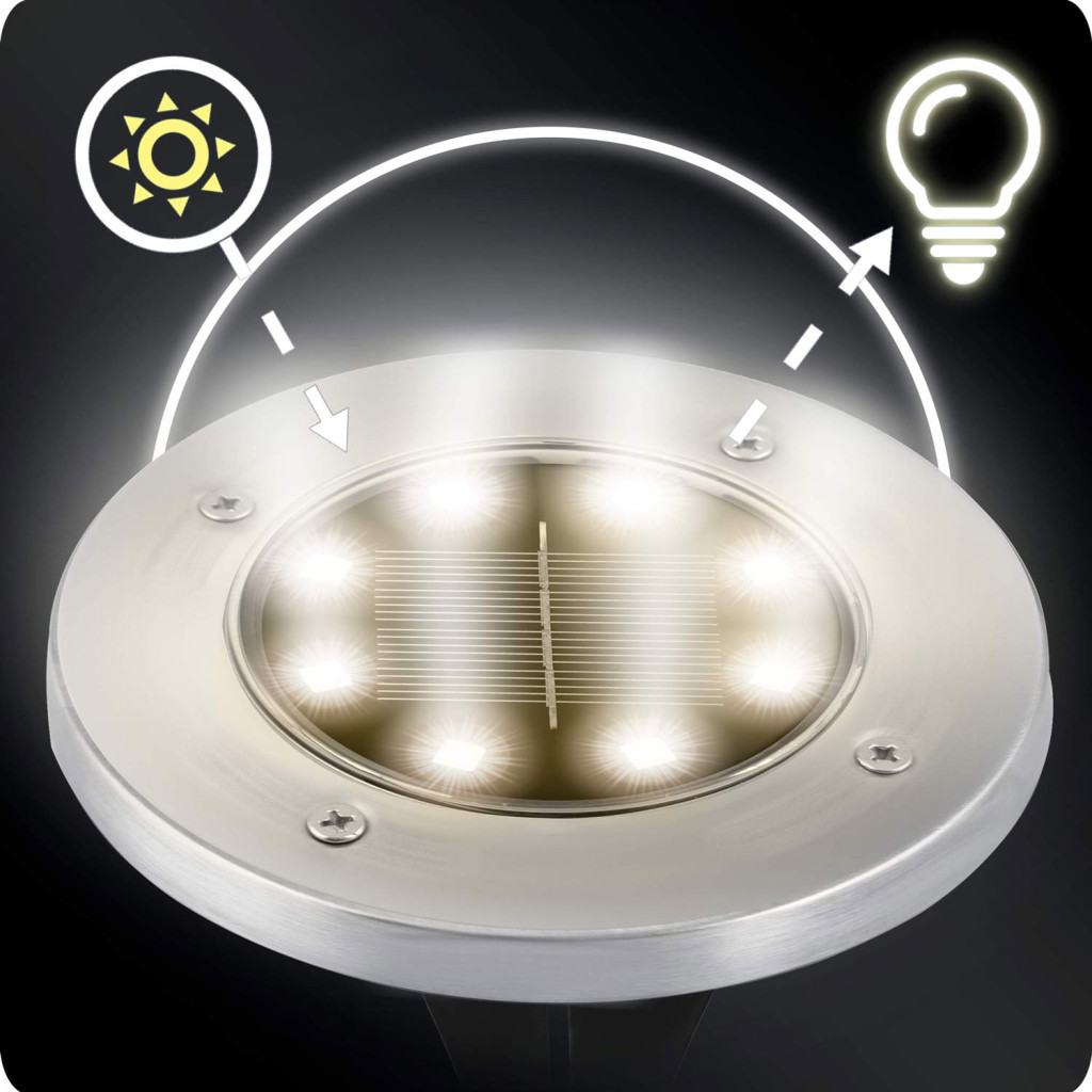Varázsold kertedet mesebeli fényországgá az Ilumen LS-104 talajba szúrható napelemes lámpaszettel! A 6 darab, kör alakú, 12 cm átmérőjű lámpa elegáns, szálcsiszolt fémhatású keretet kapott, amely észrevétlenül simul a gyepbe vagy az ágyások közé. Polikristályos szilícium napelemük nappal tölti a beépített 200 mAh-es Ni-MH akkumulátort, éjjel pedig melegfehér LED fénnyel rajzol romantikus utat a kertedben. Vízálló IPX4 védelem és automatikus fényérzékelő gondoskodik a gondtalan működésről.