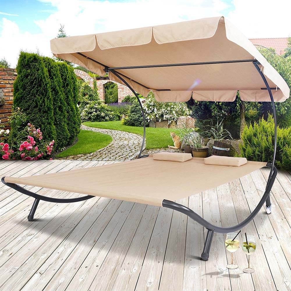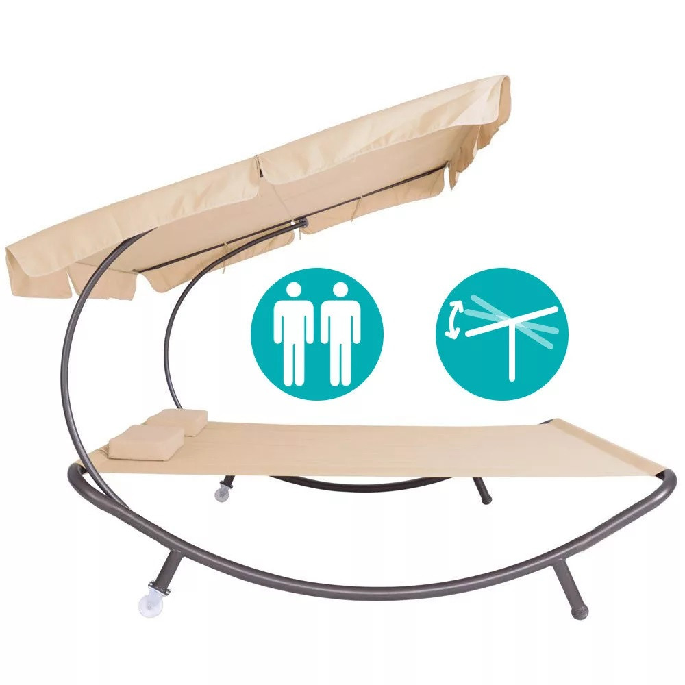 Kétszemélyes napozóágy árnyékolóval – bézs