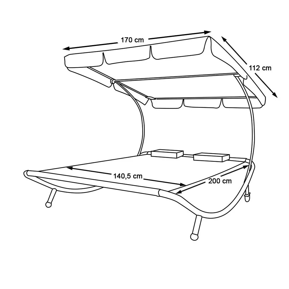 Élvezd a nyári pihenést kettesben a kétszemélyes napozóággyal árnyékolóval, amely elegáns megjelenésével és praktikus kialakításával a kert vagy terasz ékköve lesz. A dönthető árnyékoló kellemes védelmet nyújt a nap ellen, míg a két puha párna és a tágas fekvőfelület maximális kényelmet biztosít. A beépített kerekeknek köszönhetően könnyen mozgatható, így mindig megtalálhatod a tökéletes helyet a pihenéshez.