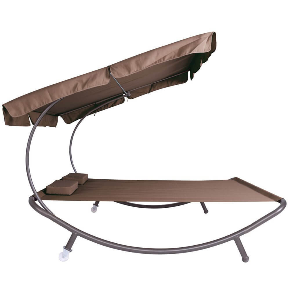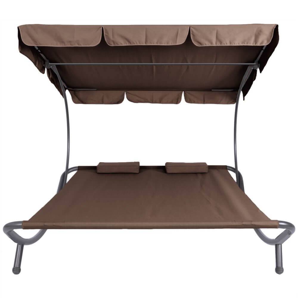 Kétszemélyes napozóágy árnyékolóval – sötétbarna