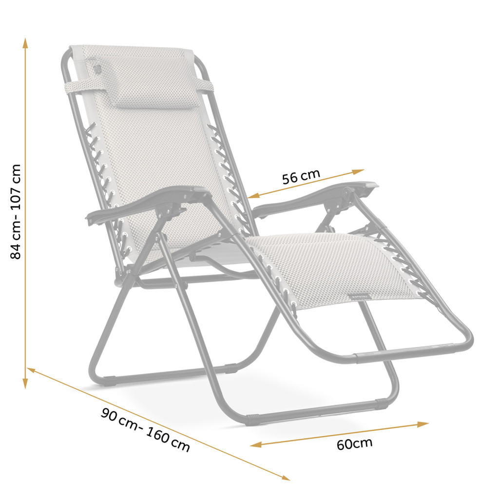 Az okosan kialakított fekvőszék tökéletes társ napozáshoz, olvasáshoz vagy délutáni sziesztához. A feszes fűzőzés egyenletesen osztja el a testsúlyt, ezért a szövet nem vág be, a masszív csőváz pedig nyugodt hátradőlést enged. A kényelmes karfák megkönnyítik a felállást, a kivehető párna pedig személyre szabható alátámasztást nyújt a nyaknak, hogy minden pozícióban pihentető élményt kapj.