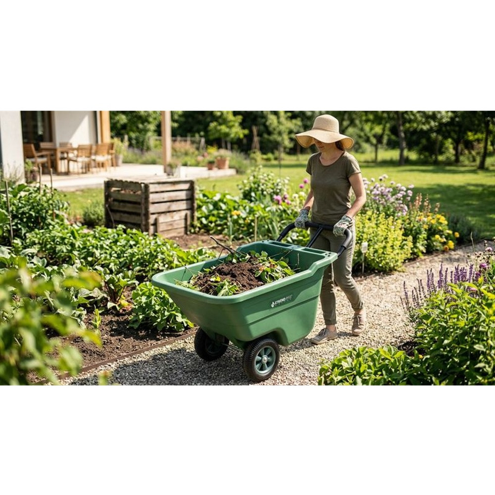 • Nagy kapacitású kerti kocsi: 90 literes térfogat
