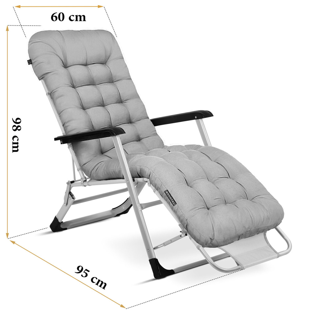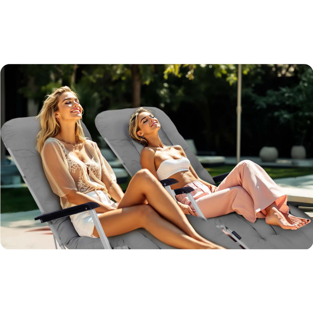 Praktikus, egy mozdulattal összehajtható szerkezete révén könnyedén magaddal viheted a nyaralóba, strandra vagy egyszerűen elteheted a garázsba. A több fokozatban állítható dőlés lehetővé teszi, hogy ülj, félig feküdj vagy teljesen elnyújtózz. Időjárásálló huzata ellenáll a napsütésnek és a fröccsenő víznek, így hosszú távon megőrzi elegáns megjelenését. A puha párnázat körbeölel, minimalizálja a nyomáspontokat, és órákon át biztosítja a gondtalan pihenést.