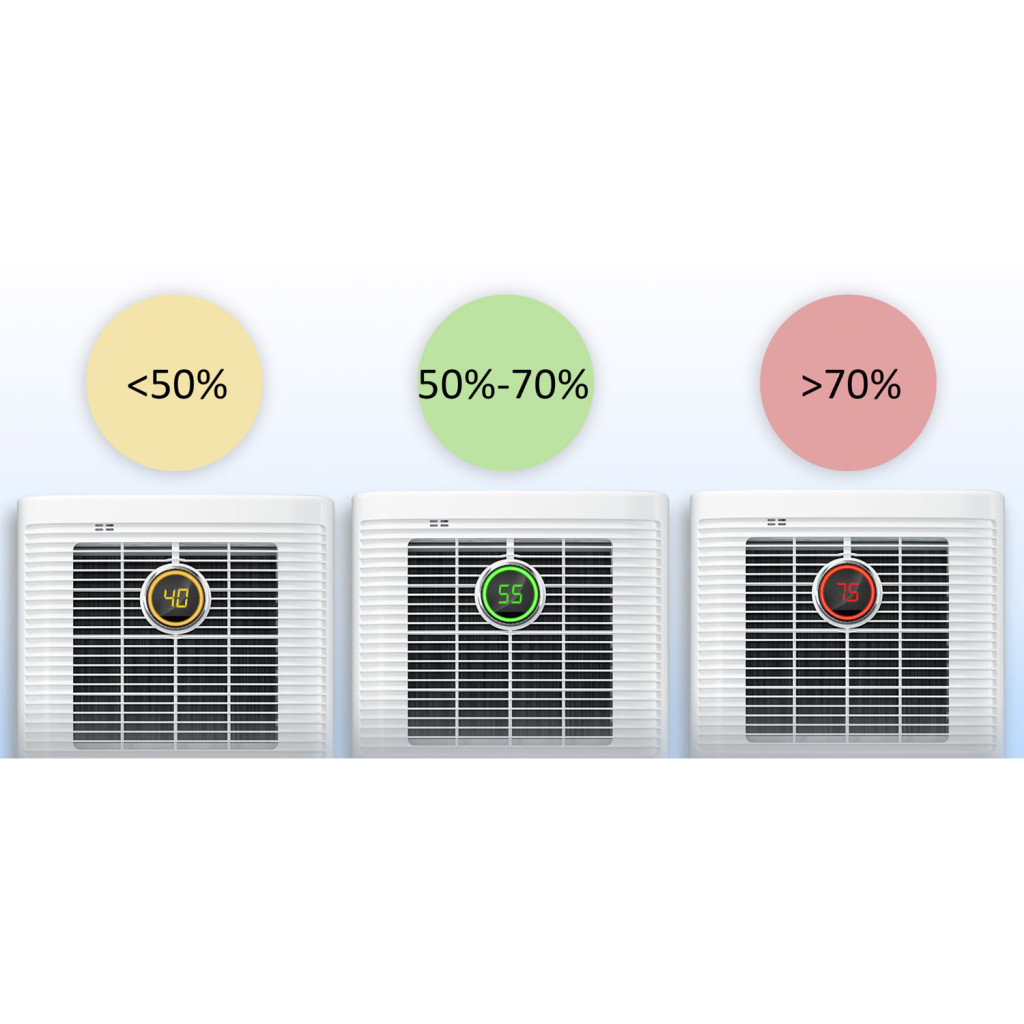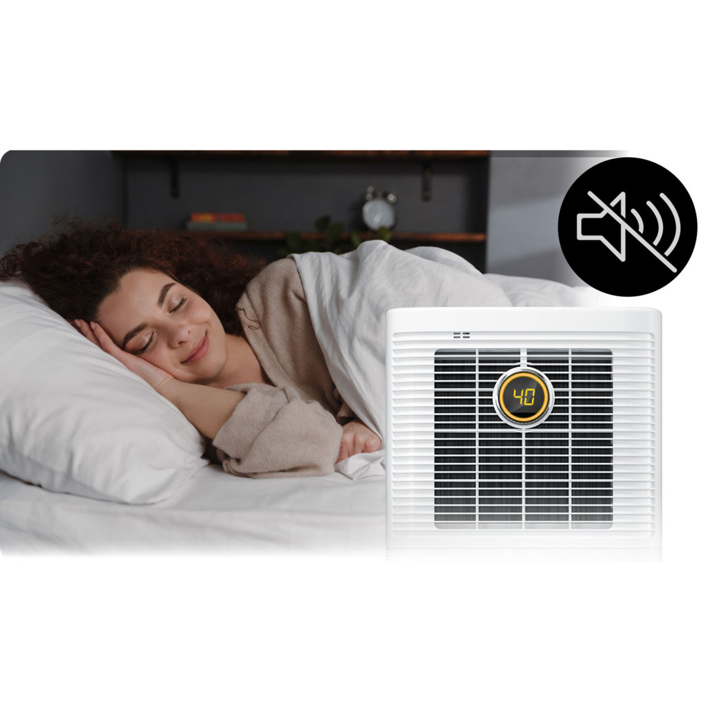 Legfeljebb 40 dB-es halk működése mellett is hatékonyan szárítja a levegőt, ezért nappaliban, hálóban vagy gyerekszobában is zavartalanul használhatod. A színes LED-gyűrű első pillantásra megmutatja a páratartalmat: sárga a száraz, zöld az ideális, piros a túl nedves levegőnél. Három üzemmódja – célérték-vezérelt párátlanítás, folyamatos üzem és ruhaszárító mód – tökéletesen alkalmazkodik a mindennapi igényekhez, a 24 órás időzítővel pedig előre megtervezheted a működést.