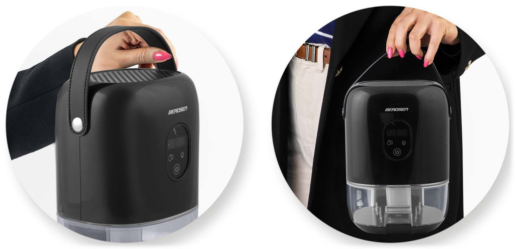 Szabadulj meg a nyirkos levegőtől a Berdsen BR-10B párátlanítóval! A mindössze 14 × 17 × 24 cm-es, 1,46 kg-os készülék diszkrét fekete köntösben, bőrhatású hordfüllel érkezik, így könnyedén áthelyezheted a lakás bármely pontjára. Peltier technológiája naponta akár 400 ml vizet von ki a levegőből, az 1000 ml-es, kivehető tartály pedig ritkább ürítést igényel. A legfeljebb 34 dB-es működés szinte suttogás, a finoman pulzáló, színes LED fény pedig hangulatos kiegészítője a modern otthonnak.