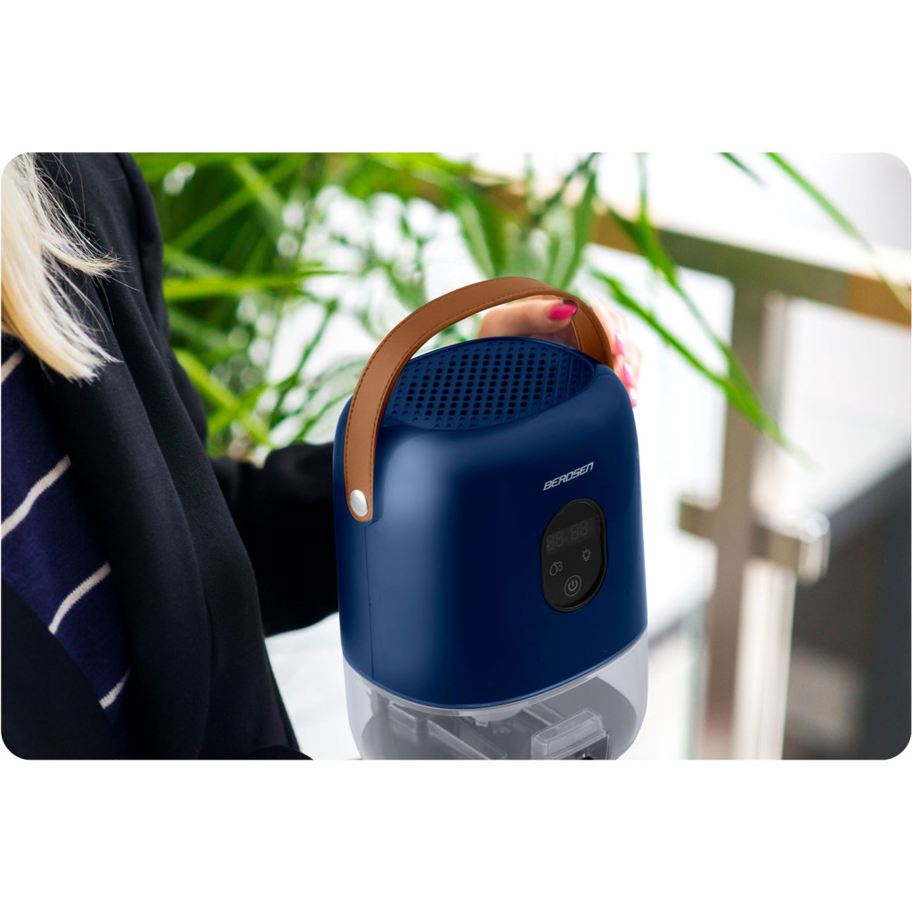 Szabadulj meg az egészségtelen párától a Berdsen BR-10B páramentesítővel! A mindössze 14 × 17 × 24 cm-es, 1,46 kg-os készülék granátkék háza elegáns kiegészítője a lakásnak, mégis 400 ml nedvességet von ki naponta. A Peltier-technológiának köszönhetően csak 22,5 W-ot fogyaszt, így pénztárca- és környezetbarát. A 34 dB-es, suttogó halk működés nem zavar alvás közben sem, a 1000 ml-es, könnyen kivehető tartályra pedig ritkán kell figyelned.