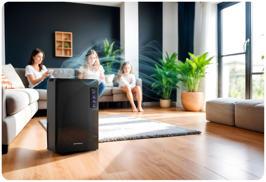 A Berdsen BR-22A párátlanító és légtisztító egy elegáns, fekete készülék, amely 90 W teljesítménnyel naponta akár 700 ml nedvességet von ki a levegőből. A 2,2 literes tartálynak köszönhetően ritkábban kell ürítened, a beépített Peltier technológia pedig energiahatékony működést biztosít. Csupán 34 dB-es zajszinttel csendben teszi a dolgát, míg az UV-C lámpa és a TiO₂ szűrő gondoskodik a tiszta, kórokozó-mentes levegőről akár 40 m³-es helyiségben is.
