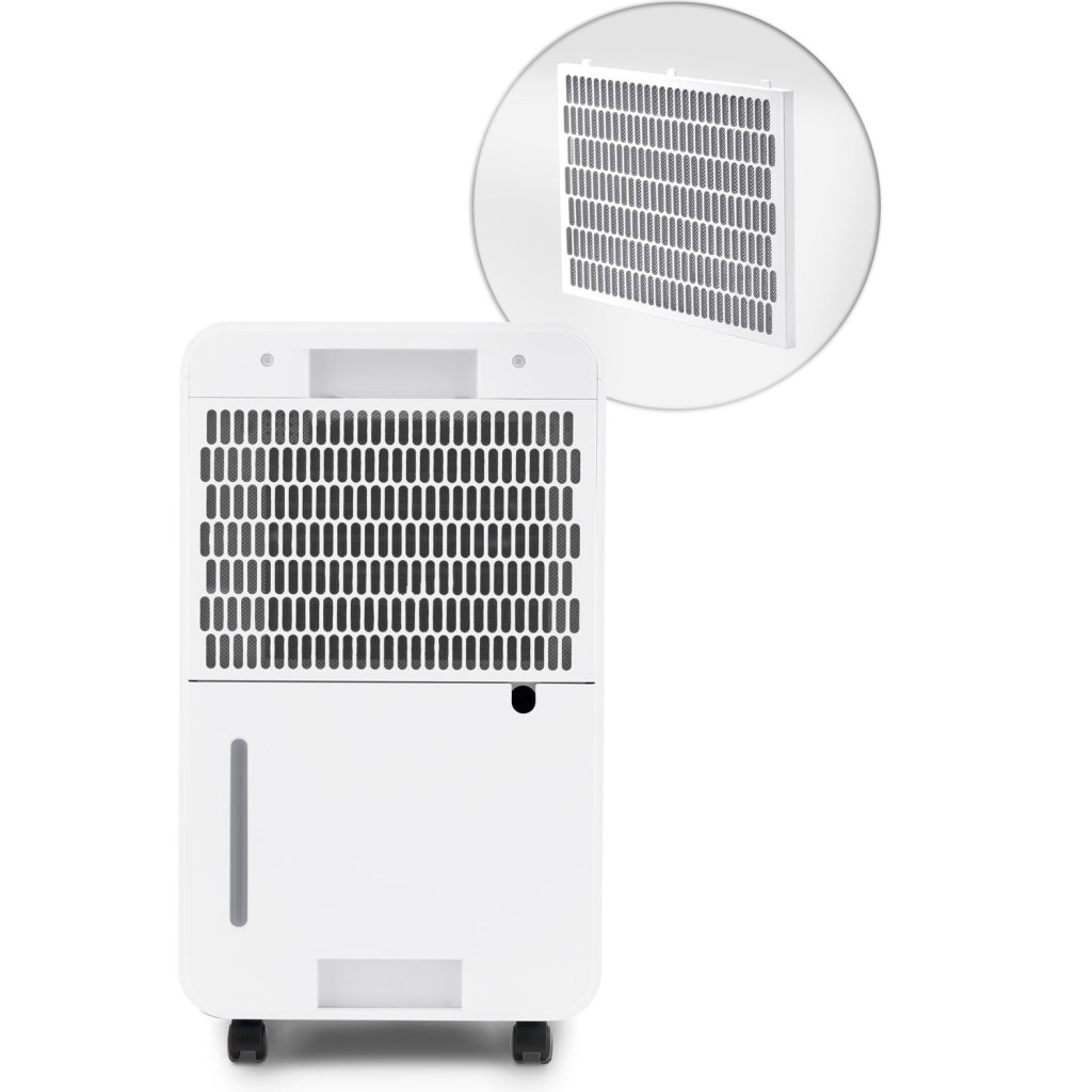 A 280 W-os kompresszor energiatakarékosan, mindössze 39 dB zajszint mellett dolgozik, így nappal és éjszaka is zavartalan marad a komfort. A R290 hűtőközeg környezetbarát megoldást kínál, a gyerekzár pedig nyugalmat ad, ha kisgyermek van a lakásban. A 2 literes tartály túltöltés elleni védelemmel és automatikus kikapcsolással rendelkezik, a csomagban lévő tömlővel pedig folyamatos vízelvezetés is kialakítható.