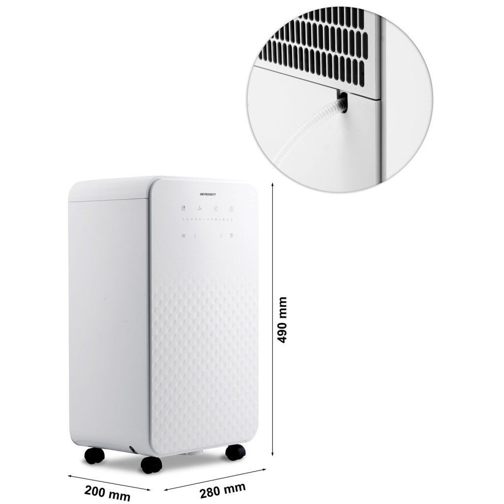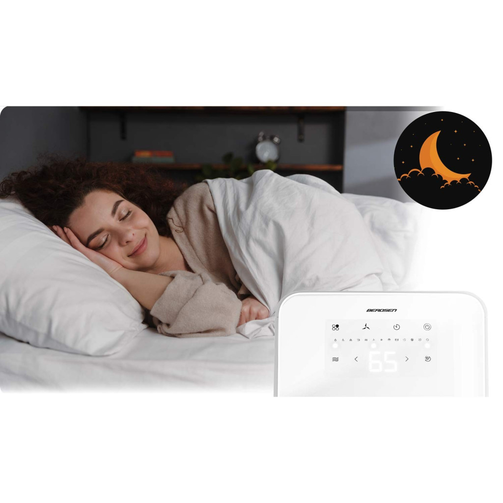 A Berdsen BR-524 kompresszoros párátlanító elegáns, fehér burkolatával diszkréten illeszkedik bármely otthonba, miközben 24 óra alatt akár 12 liter vizet is képes kivonni a levegőből. Hat intelligens üzemmódja – a folyamatos, a ruhaszárító, a ventilációs, a normál, a csendes éjszakai és a turbó – mindig az aktuális igényhez igazodik. Az érintésérzékeny LCD-panel valós idejű páratartalom-kijelzést ad, a beépített higrosztát pedig 30-80% között szabályozza a kívánt értéket.