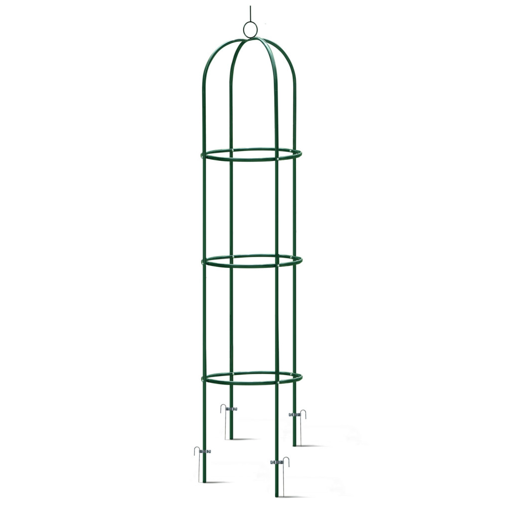 Alakítsd át a kertedet varázslatos, virágokkal futtatott oszloppá a Plonos 200 cm magas lugasával! A porfestett acélból készült, sötétzöld szerkezet elegáns támaszt nyújt rózsának, borostyánnak, szőlőnek és minden kúszónak. Karcsú, 40 × 40 cm-es alapterületével kevés helyet igényel, mégis stabilitást ad a mellékelt földbe rögzíthető tüskéknek köszönhetően. Időtálló, rozsda- és UV-álló felületével egész évben díszíti a kertet vagy teraszt.