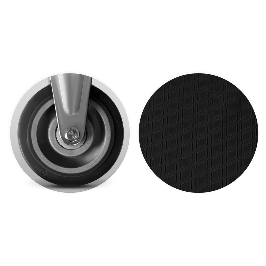 • Kerekek: 2 fix, 2 forgó, gumírozott, fém erősítéssel