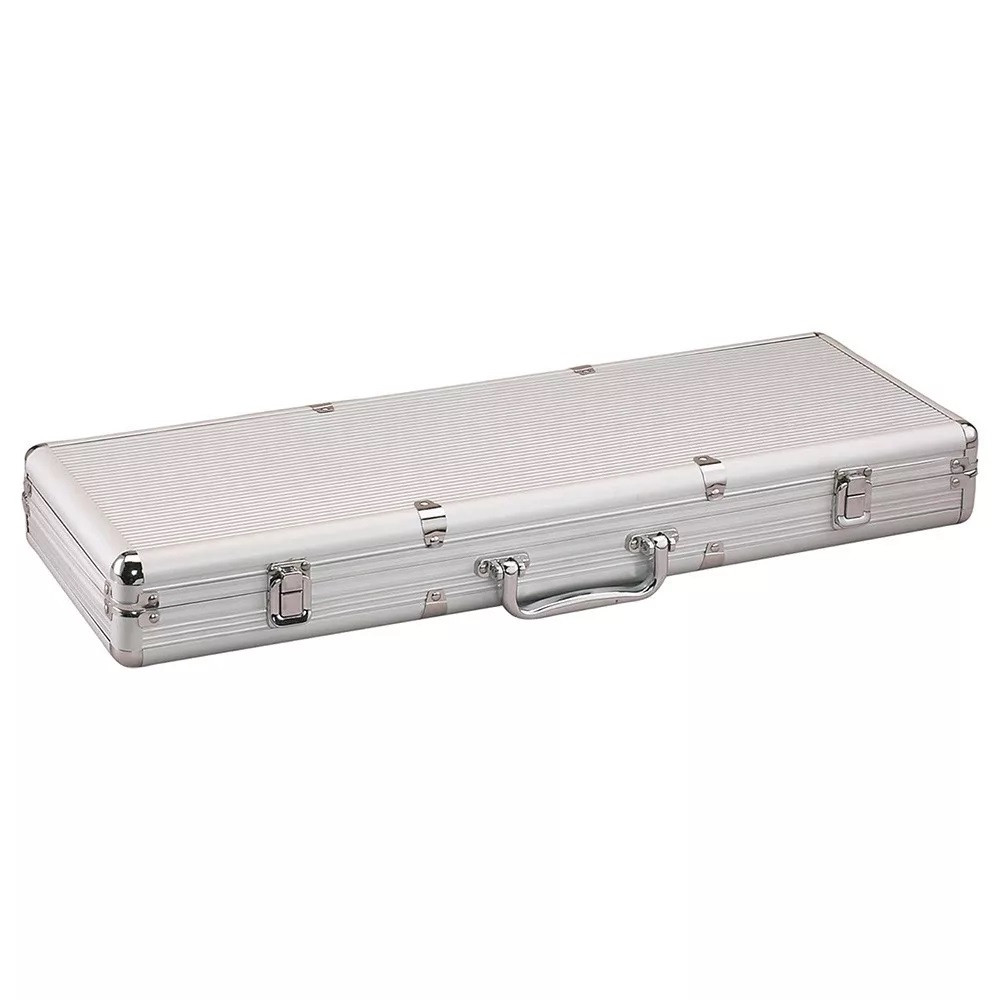 Emeld új szintre a pókerestéket az 500 db-os póker szettel! A masszív, zárható alumínium táskában minden kelléknek megvan a precízen kialakított helye: öt színű, kaszinóminőségű zseton, két pakli plasztik bevonatú kártya, kockák és dealer jelzők. A 6,9 kg-os, mégis könnyen hordozható bőrönddel bárhová magaddal viheted a Las Vegas-i hangulatot – csak csapd fel a fedelét, és már indulhat is a tétemelés!