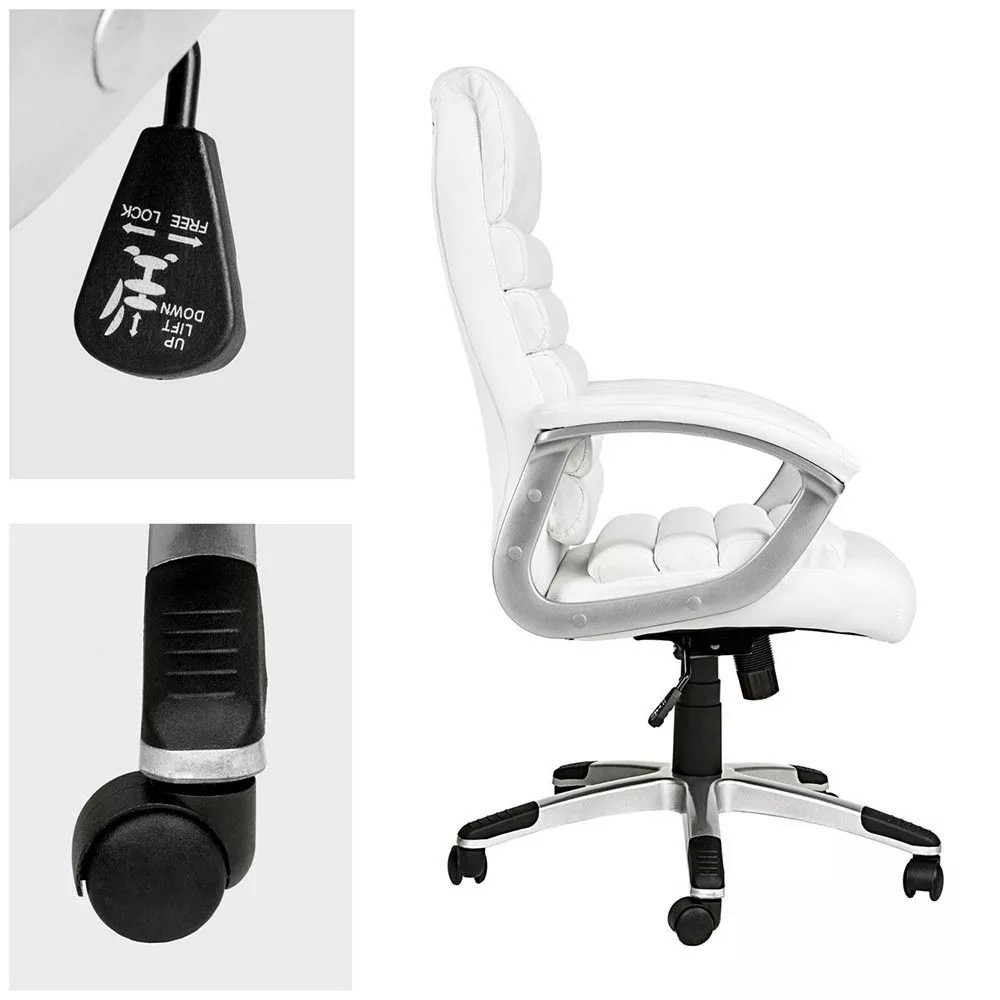 Ez a főnöki forgószék ötvözi a luxust és a funkcionalitást: 360°-ban forgatható, gázliftes magasságállítással és dönthető háttámlával rendelkezik, így bármilyen pozícióban kényelmesen dolgozhatsz vagy pihenhetsz. Masszív szerkezete akár 120 kg-os terhelést is elbír, így hosszú távon is stabil, megbízható társ a mindennapi munkában. Letisztult, fehér színe eleganciát visz minden irodába.