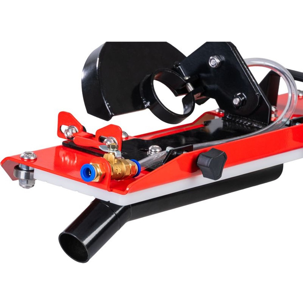 Ez a praktikus adapter átalakítja a sarokcsiszolód egy precíz gérvágó állomássá. A beépített 45°-os vezető gondoskodik a tökéletes szög tartásáról, így elkerülhetők a pontatlanságokból adódó illesztési hibák. A slider mechanika megkönnyíti a folyamatos, egyenletes előtolást, ami nemcsak a munkavégzést gyorsítja, de a korong élettartamát is növeli, mivel kevesebb lesz a félrevágásból eredő terhelés.